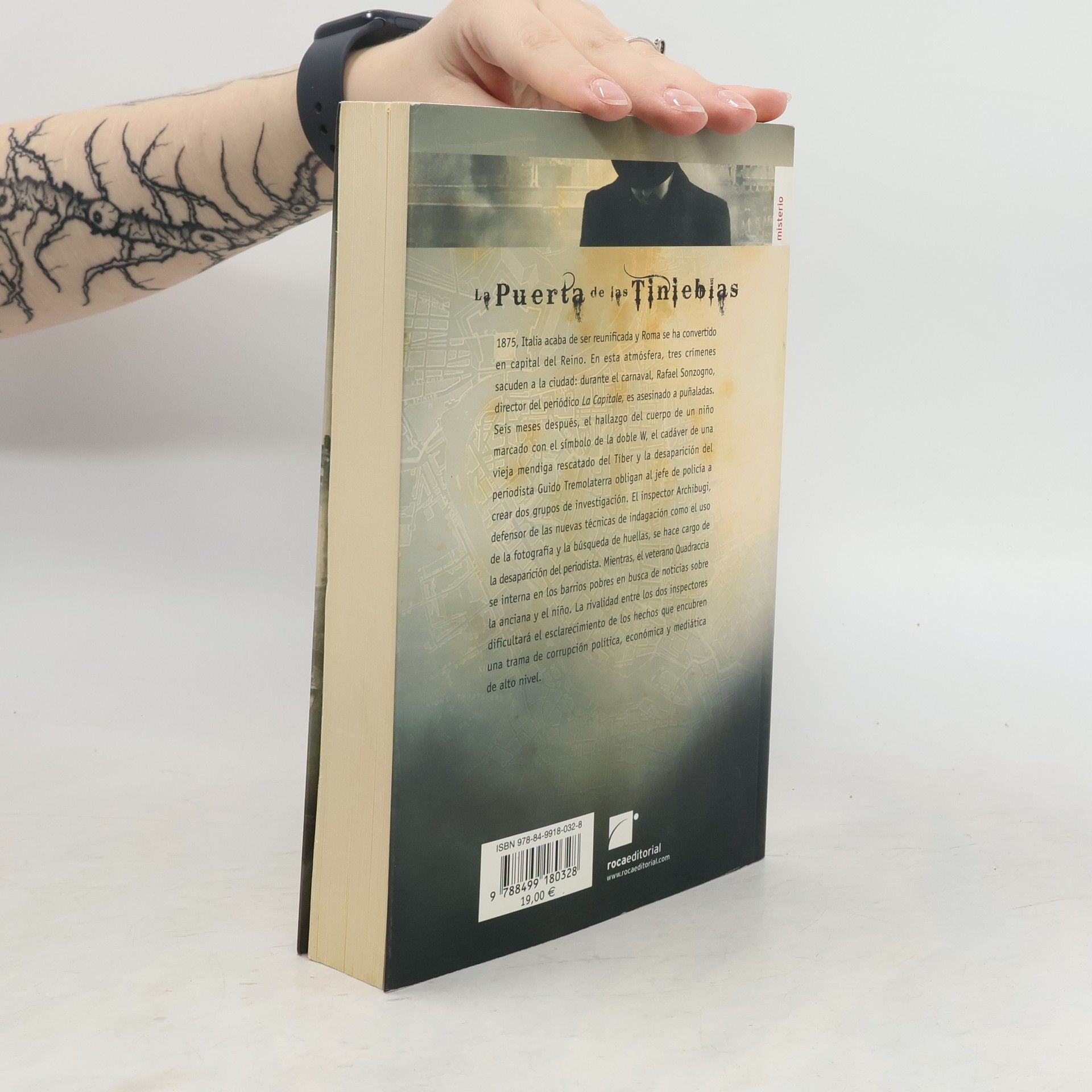 En la Roma de 1875 banqueros, políticos, periodistas y masones se ven envueltos en un misterio guiado por la mano invisible de Edgar Allan Poe, y que recuerda a el Alienista de Caleb Carr.