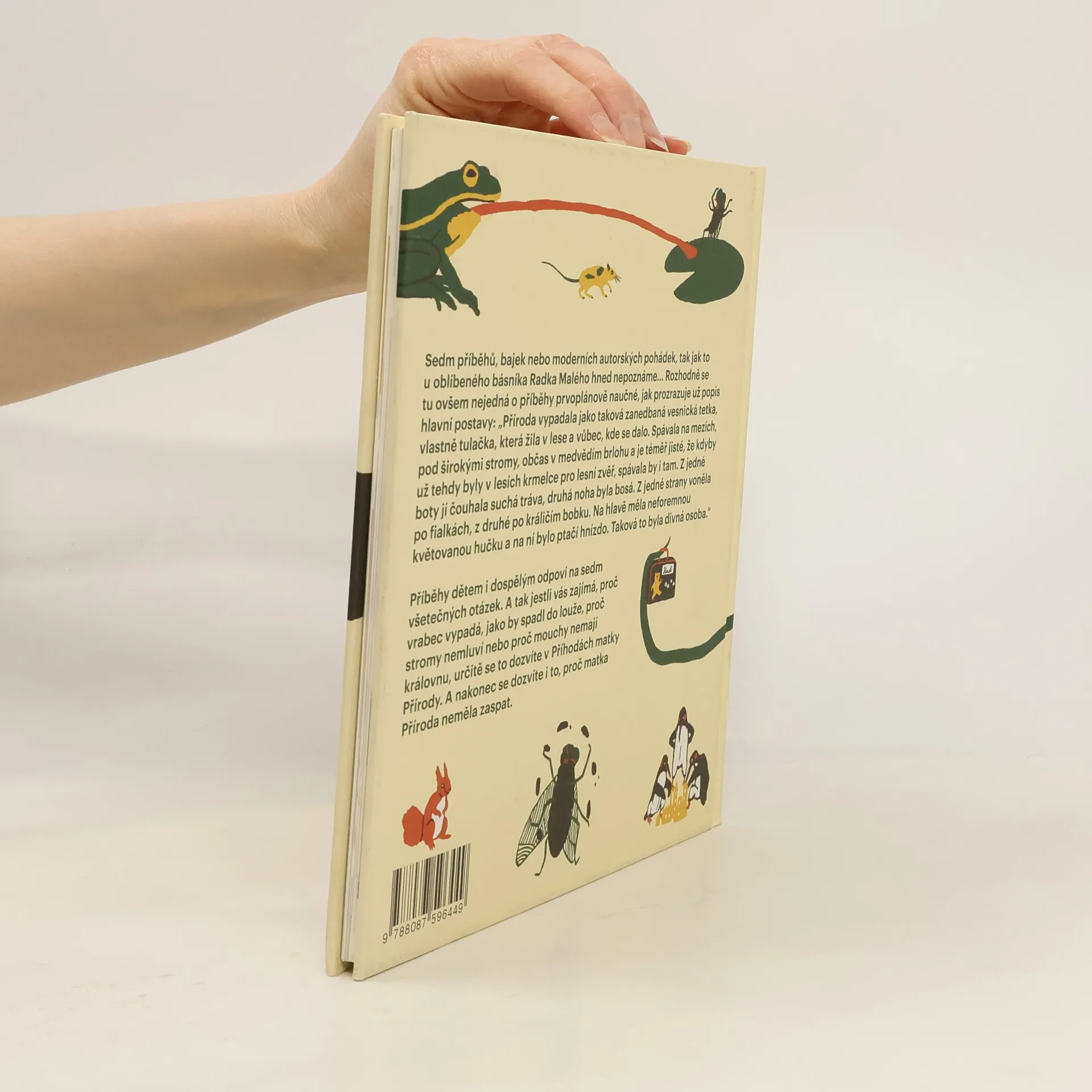 Sedm příběhů, bajek nebo moderních autorských pohádek, tak jak to u oblíbeného básníka Radka Malého hned nepoznáme… Rozhodně se tu ovšem nejedná o příběhy prvoplánově naučné, jak prozrazuje už popis hlavní postavy: „Příroda vypadala jako taková zanedbaná vesnická tetka, vlastně tulačka, která žila v lese a vůbec, kde se dalo. Spávala na mezích, pod širokými stromy, občas v medvědím brlohu a je téměř jisté, že kdyby už tehdy byly v lesích krmelce pro lesní zvěř, spávala by i tam. Z jedné boty jí čouhala suchá tráva, druhá noha byla bosá. Z jedné strany voněla po fialkách, z druhé po králičím bobku. Na hlavě měla neforemnou květovanou hučku a na ní bylo ptačí hnízdo. Taková to byla divná osoba.“ Příběhy dětem i dospělým odpoví na sedm všetečných otázek. A tak jestli vás zajímá, proč vrabec vypadá, jako by spadl do louže, proč stromy nemluví nebo proč mouchy nemají královnu, určitě se to dozvíte v Příhodách matky Přírody. A nakonec se dozvíte i to, proč matka Příroda neměla zaspat.