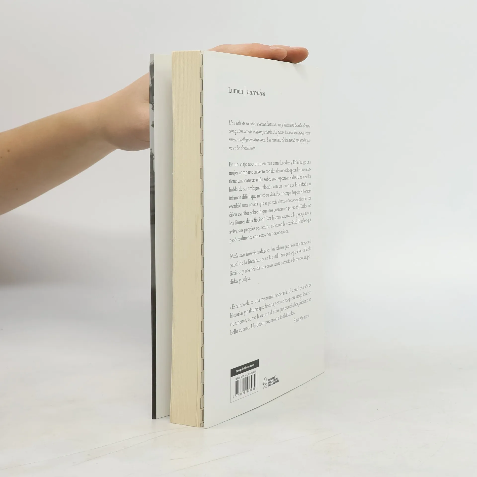 Una novela sobre el peligroso poder de contar historias.Un fenómeno literario imparable vendido en ocho países antes de su publicación.«Una aventura inesperada. Una sutil telaraña de historias y palabras que fascina y envuelve, que te atrapa inadvertidamente, como le ocurre al niño que escucha boquiabierto un bello cuento. Un debut poderoso e inolvidable».Rosa Montero«Uno sale de su casa, cuenta historias, ríe y descorcha botellas de vino con quien accede a acompañarle. Así pasan los días, hasta que vemos nuestro reflejo en otros ojos. Las miradas de los demás son espejos que no cabe desestimar».En un viaje nocturno en tren entre Londres y Edimburgo una mujer comparte trayecto con dos desconocidos con los que mantiene una conversación sobre sus respectivas vidas. Uno de ellos habla de su ambigua relación con un joven que le confesó una infancia difícil que marcó su vida. Poco tiempo después el hombre escribió una novela que se parecía demasiado a ese episodio. ¿Es ético escribir sobre lo que nos cuentan en privado? ¿Cuáles son los límites de la ficción? Esta historia cautiva a la protagonista y aviva sus propios recuerdos, así como la necesidad de saber qué pasó realmente con estos dos desconocidos.Nada más ilusorio indaga en los relatos que nos contamos, en el papel de la literatura y en la sutil línea que separa lo real de lo ficticio, y nos brinda una envolvente narración de traiciones, pérdidas y culpa.