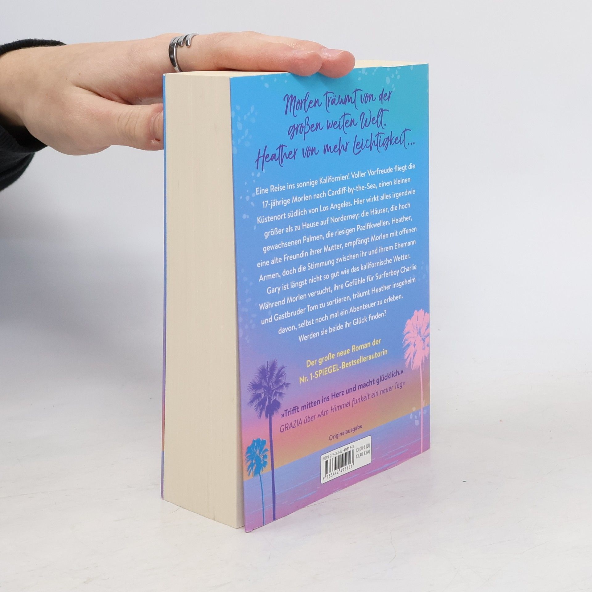 Morlen träumt von der großen weiten Welt, während Heather sich nach mehr Leichtigkeit sehnt. Die 17-jährige Morlen fliegt voller Vorfreude nach Cardiff-by-the-Sea, einem kleinen Küstenort südlich von Los Angeles. Alles erscheint hier größer als zu Hause: die Häuser, die Palmen und die riesigen Pazifikwellen. Heather, eine alte Freundin ihrer Mutter, empfängt Morlen herzlich, doch die Beziehung zu ihrem Ehemann Gary ist angespannt. Während Morlen versucht, ihre Gefühle für Surferboy Charlie und Gastbruder Tom zu klären, träumt Heather heimlich von einem eigenen Abenteuer. Werden sie beide ihr Glück finden? Der neue Sommerroman der Nr. 1-SPIEGEL-Bestsellerautorin bietet eine liebevoll illustrierte Ergänzung. Pressestimmen loben die Geschichten von Meike Werkmeister als glücklich machend, witzig und sympathisch. Ihre Erzählungen über Familie, Liebe und Strandgefühl sind einzigartig und bieten die perfekte Sommerlektüre zum Entspannen. Leser beschreiben den Roman als eine beste Freundin, die ins Herz trifft und dazu ermutigt, auf das eigene Herz zu hören.