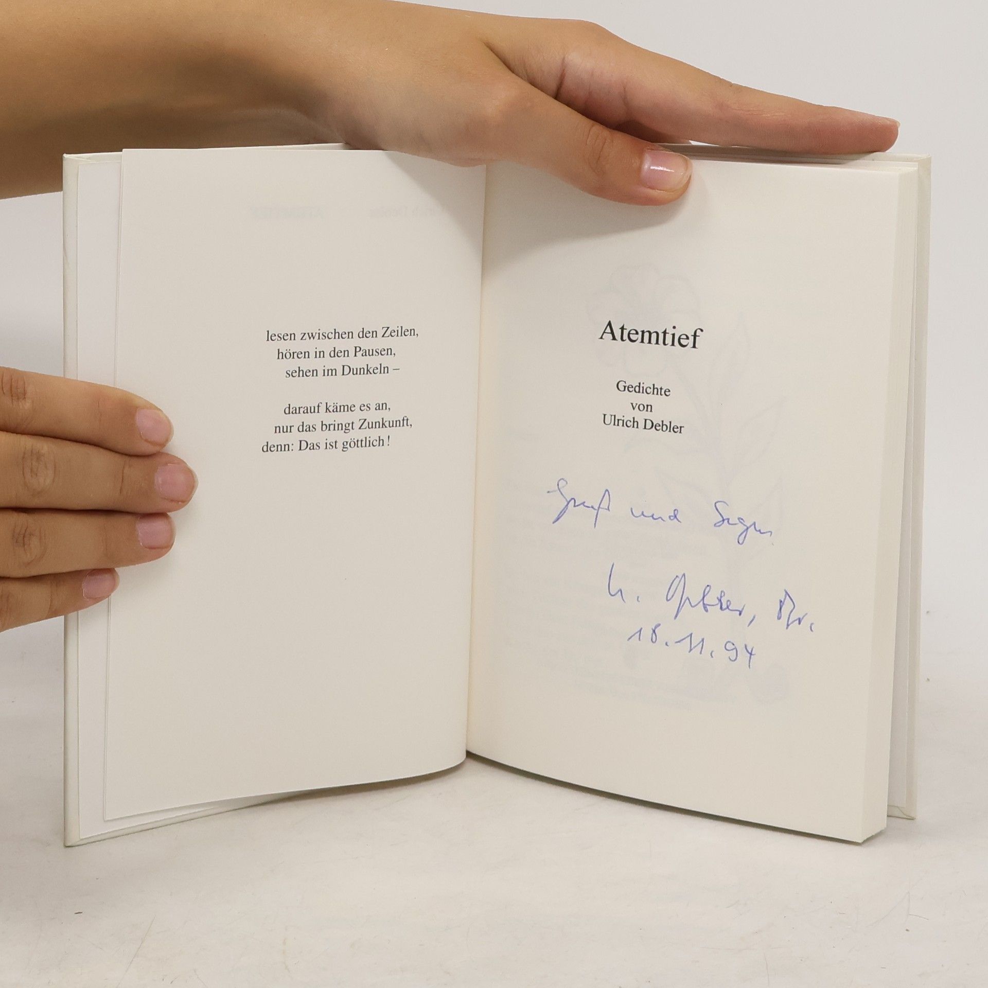 Gedichte von Ulrich Debler. Atemtief, Ulrich Debler