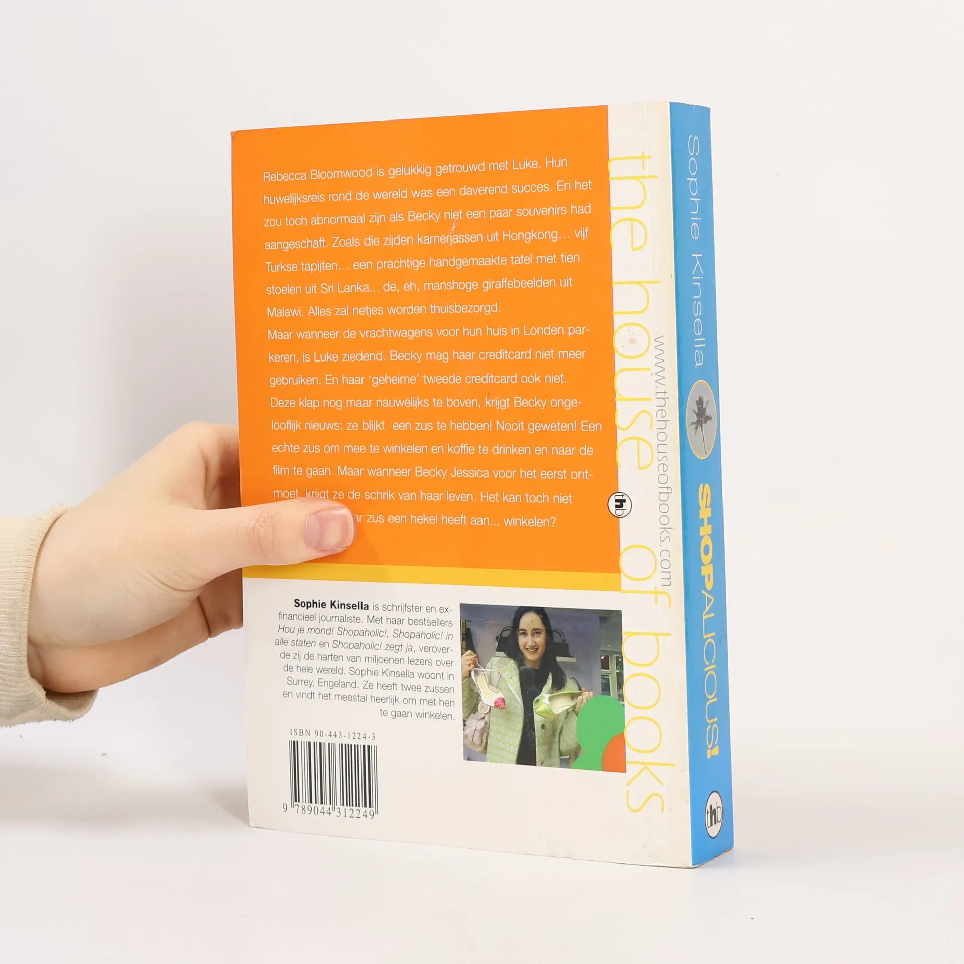 Rebecca Bloomwood is gelukkig getrouwd met Luke. Hun huwelijksreis rond de wereld was een daverend succes. En het zou toch abnormaal zijn als Becky niet een paar souvenirs had aangeschaft. Zoals die zijden kamerjassen uit Hong Kong... vijf Turkse tapijten... een prachtige handgemaakte tafel met tien stoelen uit Sri Lanka... de, eh, manshoge giraffebeelden uit Malawi. Alles zal netjes worden thuisbezorgd. Maar wanneer de vrachtwagens voor hun huis in Londen parekren, is Luke ziedend. Becky mag haar creditcard niet meer gebruiken. En haar 'geheime' tweede creditcard ook niet. Deze klap nog maar nauwelijks te boven, krijgt Becky ongelooflijk nieuws: ze blijkt een zus te hebben! Nooit geweten! Een echte zus om mee te winkelen en koffie te drinken en naar de film te gaan. Maar wanneer Becky Jessica voor het eerst ontmoet, krijgt ze de schrik van haar leven. Het kan toch niet waar zijn dat haar zus een hekel heeft aan... winkelen? Sophie Kinsella is schrijfster en ex-financieel journaliste. Met haar bestsellers Hou je mond!, Shopaholic!, Shopaholic! in alle staten en Shopaholic! zegt ja, veroverde zij de harten van miljoenen lezers over de hele wereld. Kinsella woont in Surrey, Engeland. Ze heeft twee zussen en vindt het meestal heerlijk om met hen te gaan winkelen.