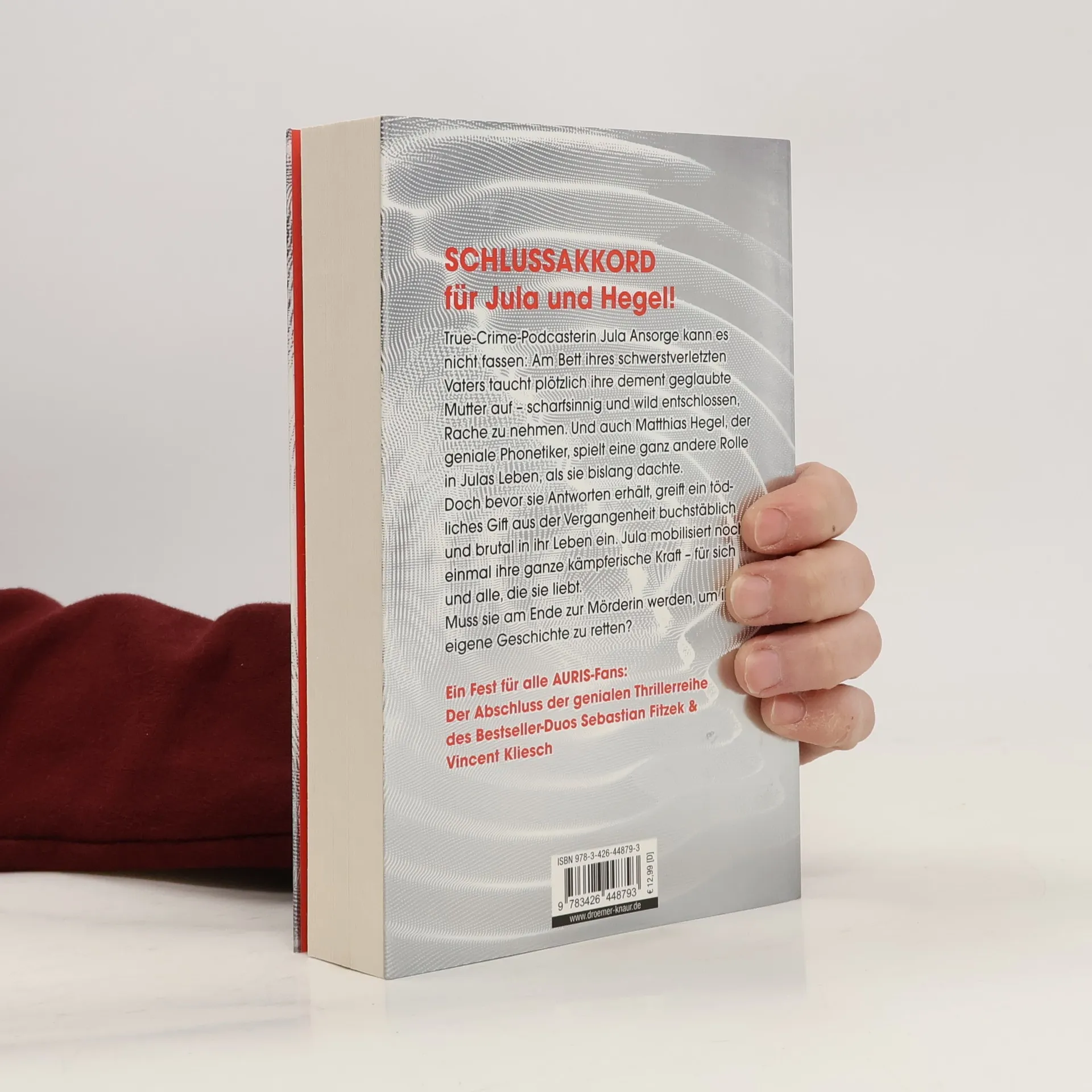Im 6. Band der Thriller-Reihe des Bestseller-Duos Sebastian Fitzek & Vincent Kliesch wird das Leben von Podcasterin Jula Ansorge auf den Kopf gestellt. Sie entdeckt, dass ihre Mutter sie belogen hat und die Demenz nur vorgetäuscht war. Zudem spielt Matthias Hegel, der forensische Phonetiker mit dem absoluten Gehör, eine viel größere Rolle in Julas Vergangenheit, als sie dachte. Doch bevor sie Antworten erhält, werden Hegel und ihre Mutter vergiftet. Die Terroristen stellen klar: Es gibt nur eine Dosis des Gegengifts, und um sie zu bekommen, muss Jula zu ihnen überlaufen. Steht sie wirklich vor der Entscheidung, zur Mörderin zu werden? Und wenn ja, wen soll sie retten und wen im Stich lassen? Um die größte Katastrophe in ihrem Leben zu verhindern, ist Hegel bereit, alles zu riskieren und das Unvorstellbare zu tun. Die packenden Thriller um das ungleiche Ermittler-Duo Jula und Hegel, der das Verbrechen hört, erobern regelmäßig die Bestsellerlisten. Wenn du vor Spannung nicht schlafen kannst und bis zum Morgengrauen weiterlesen musst, ist dies der perfekte Thriller für dich!