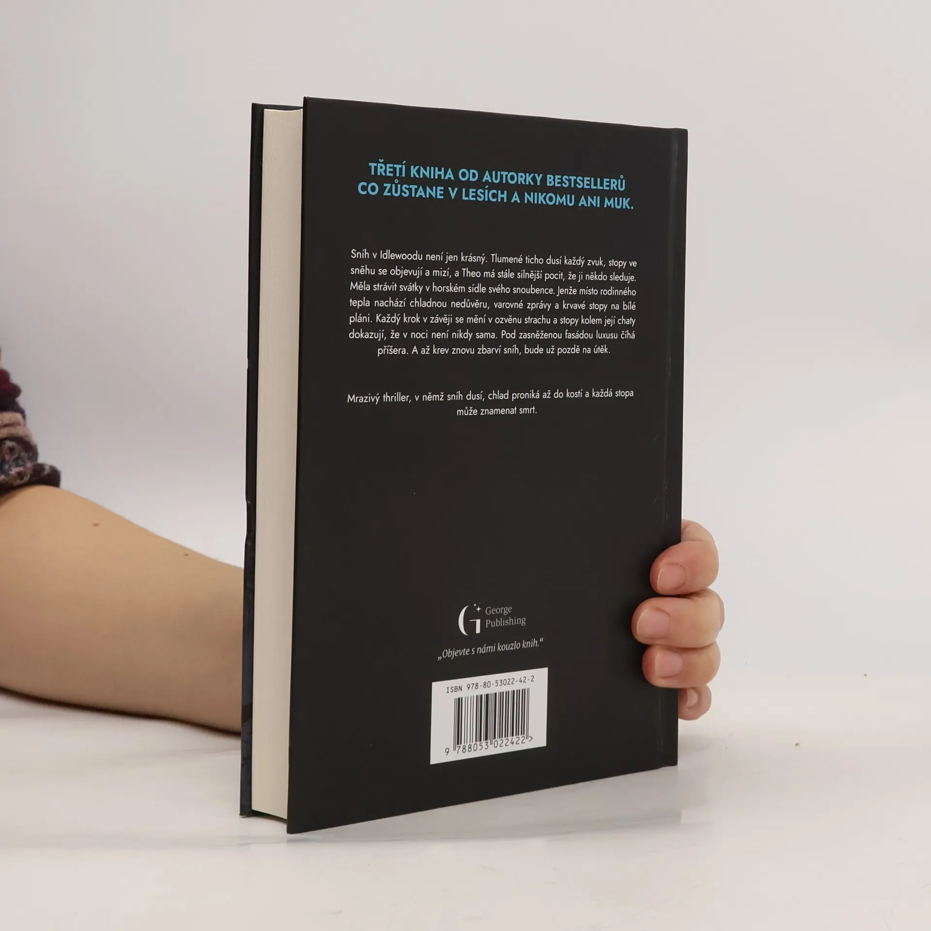 Sníh v Idlewoodu není jen krásný. Tlumené ticho dusí každý zvuk, stopy ve sněhu se objevují a mizí, a Theo má stále silnější pocit, že ji někdo sleduje. Měla strávit svátky v horském sídle svého snoubence. Jenže místo rodinného tepla nachází chladnou nedůvěru, varovné zprávy a krvavé stopy na bílé pláni. Každý krok v závěji se mění v ozvěnu strachu a stopy kolem její chaty dokazují, že v noci není nikdy sama. Pod zasněženou fasádou luxusu číhá příšera. A až krev znovu zbarví sníh, bude už pozdě na útěk. Mrazivý thriller, v němž sníh dusí, chlad proniká až do kostí a každá stopa může znamenat smrt.