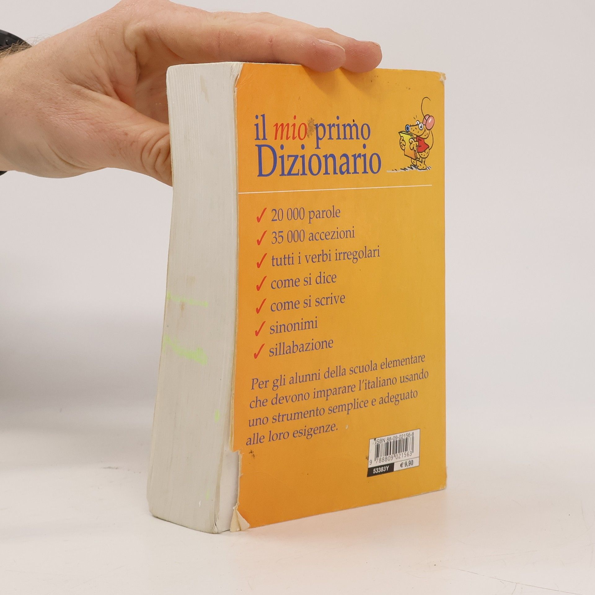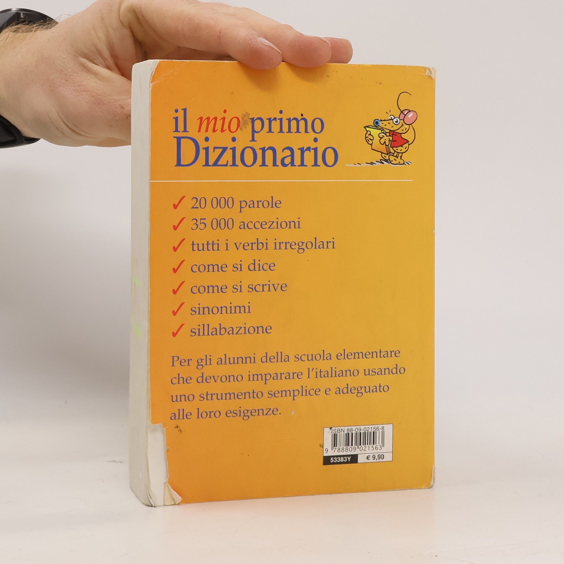 Il mio primo dizionario è rivolto agli alunni della scuola elementare che devono imparare l'italiano usando uno strumento semplice e adeguato alle loro esigenze. Il significato di tutti i vocaboli e gli usi linguistici più diffusi della lingua comune sono spiegati con un linguaggio semplice ma preciso. L'ampio numero di parole contenute fa di questo dizionario uno strumento adatto a soddisfare i bisogni dell'intero ciclo della scuola elementare. In questo dizionario 20.000 parole con i relativi significati, 35.000 accezioni, un'appendice con tutti i verbi irregolari, sinonimi, sillabazione e la sezione del "Come si dice", "Come si scrive", "Parole dell'informatica e di Internet". Età di da 6 anni.