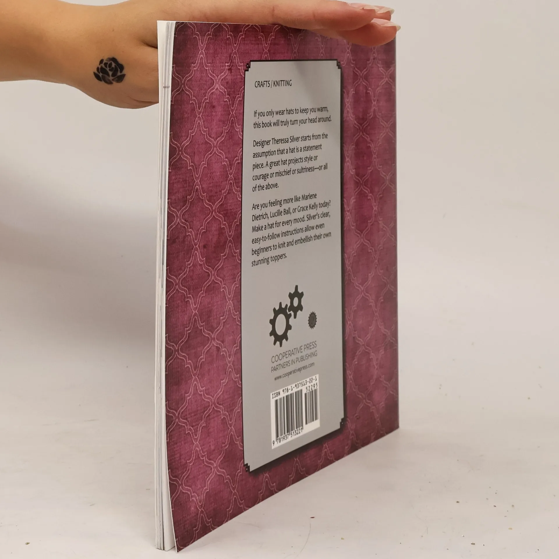 If you only wear hats to keep you warm, this book will truly turn your head around.Designer Theressa Silver starts from the assumption that a hat is a statement piece. A great hat projects style or courage or mischief or sultriness—or all of the above.Are you feeling more like Marlene Dietrich, Lucille Ball, or Grace Kelly today? Make a hat for every mood. Silver’s clear, easy-to-follow instructions allow even beginners to knit and embellish their own stunning toppers.
