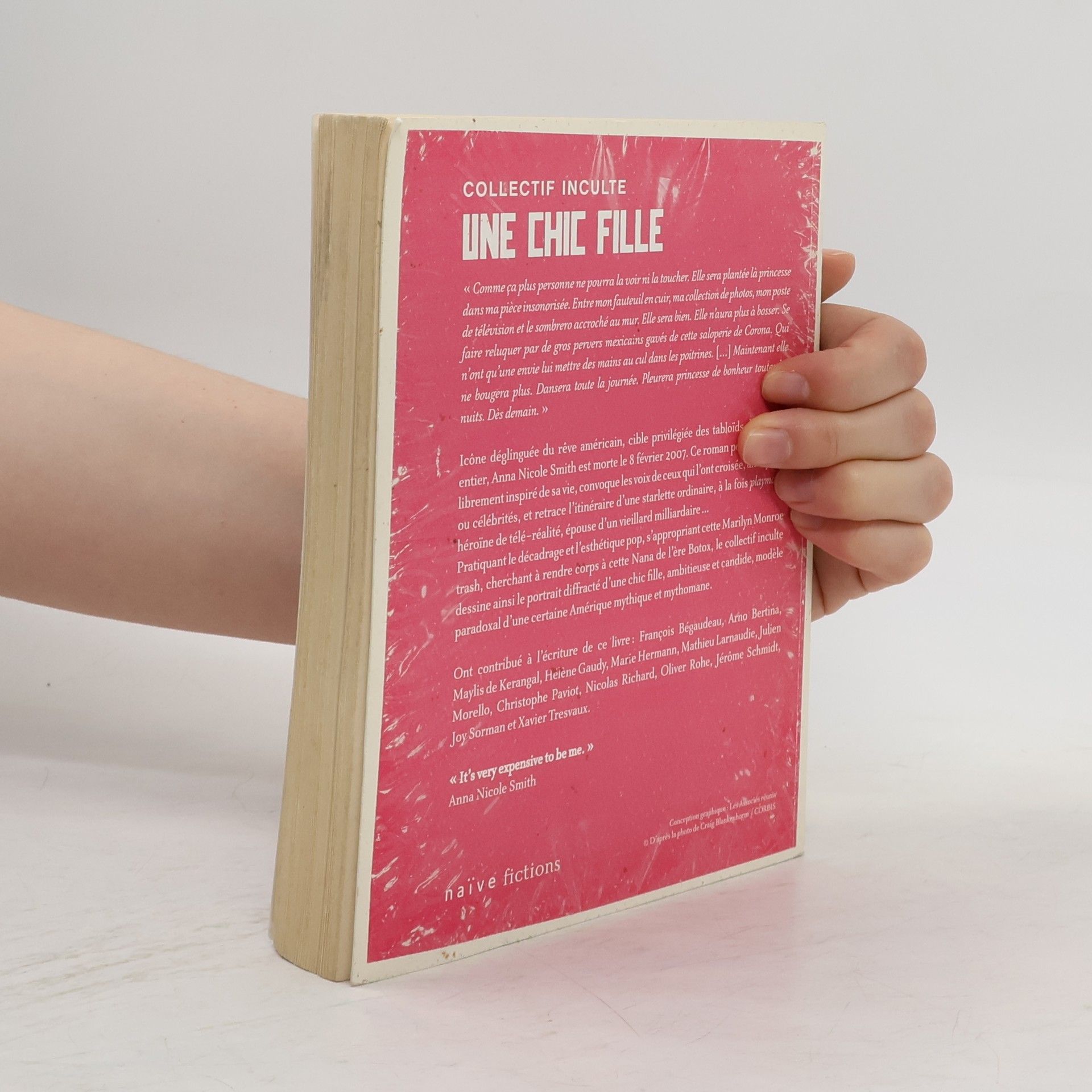 "Comme ça plus personne ne pourra la voir ni la toucher. Elle sera plantée là princesse dans ma pièce insonorisée. Entre mon fauteuil en cuir, ma collection de photos, mon poste de télévision et le sombrero accroché au mur. Elle sera bien. Elle n'aura plus à bosser. Se faire reluquer par de gros pervers mexicains gavés de cette saloperie de Corona. Qui n'ont qu'une envie lui mettre des mains au cul dans les poitrines. [...] Maintenant elle bougera plus. Dansera toute la journée. Pleurera princesse de bonheur toutes les nuits. Dès demain. " Icône déglinguée du rêve américain, cible privilégiée des tabloïds dû monde entier, Anna Nicole Smith est morte le 8 février 2007. Ce roman polyphonique , Librement inspiré de sa vie, convoque les voix de ceux qui l'ont croisée, anonymes ou célébrités, et retrace l'itinéraire d'une starlette ordinaire, à la fois playmate, héroïne de télé réalité, épouse d'un vieillard milliardaire ... Pratiquant le décadrage et l'esthétique pop, s'appropriant cette Marilyn Monroe, trash cherchant à rendre corps à cette Nana de l'ère Botox, le collectif inculte dessine ainsi le portrait diffracté d'une chic fille, ambitieuse et candide, modèle paradoxal d'une certaine Amérique mythique et mythomane.
