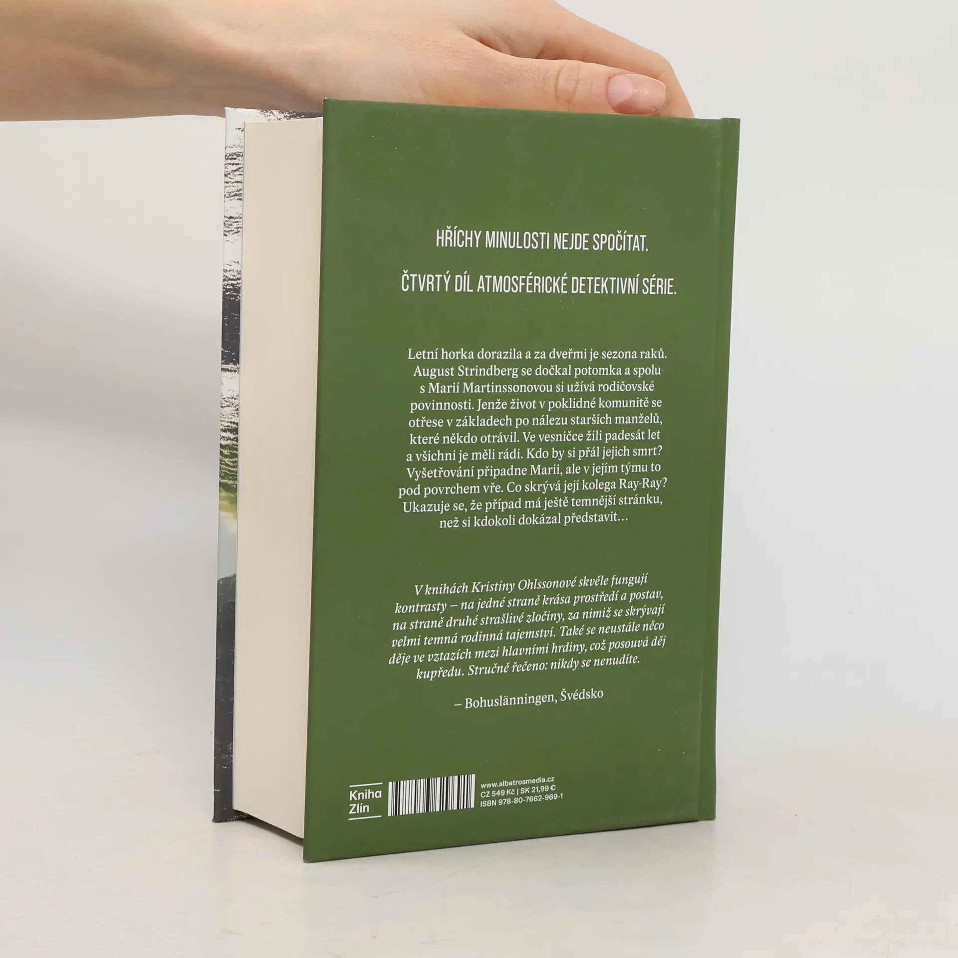 Hříchy minulosti nejde spočítat. Čtvrtý díl atmosférické detektivní série. Letní horka dorazila a za dveřmi je sezóna raků. August Strindberg se dočkal potomka a spolu s Marií Martinssonovou si užívá rodičovské povinnosti. Jenže život v poklidné komunitě se otřese v základech po nálezu starších manželů, které někdo otrávil. Ve vesničce žili padesát let a všichni je měli rádi. Kdo by si přál jejich smrt? Vyšetřování připadne Marii, ale v jejím týmu to pod povrchem vře. Co skrývá její kolega Ray-Ray? Ukazuje se, že případ má ještě temnější stránku, než si kdokoli dokázal představit…