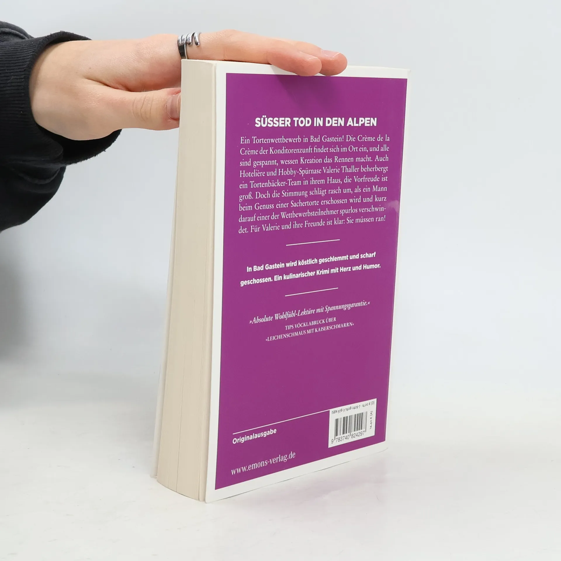 Ein kulinarischer Krimigenuss mit Herz und Humor Mit der Idylle in Bad Gastein ist es vorbei, als in Valerie Thallers Grand Hotel ein Tortenwettbewerb stattfindet. Denn der bringt nicht nur Unruhe in den Kurort, sondern auch einen Toten: Ein Tourist wird beim Genuss einer Sachertorte erschossen, wenig später verschwindet einer der Wettbewerbsteilnehmer spurlos. Hauptverdächtiger ist ausgerechnet Valeries Schwager, und so stolpert sie mit ihrer Freundin Nora mal wieder mitten hinein in eine Mordermittlung.