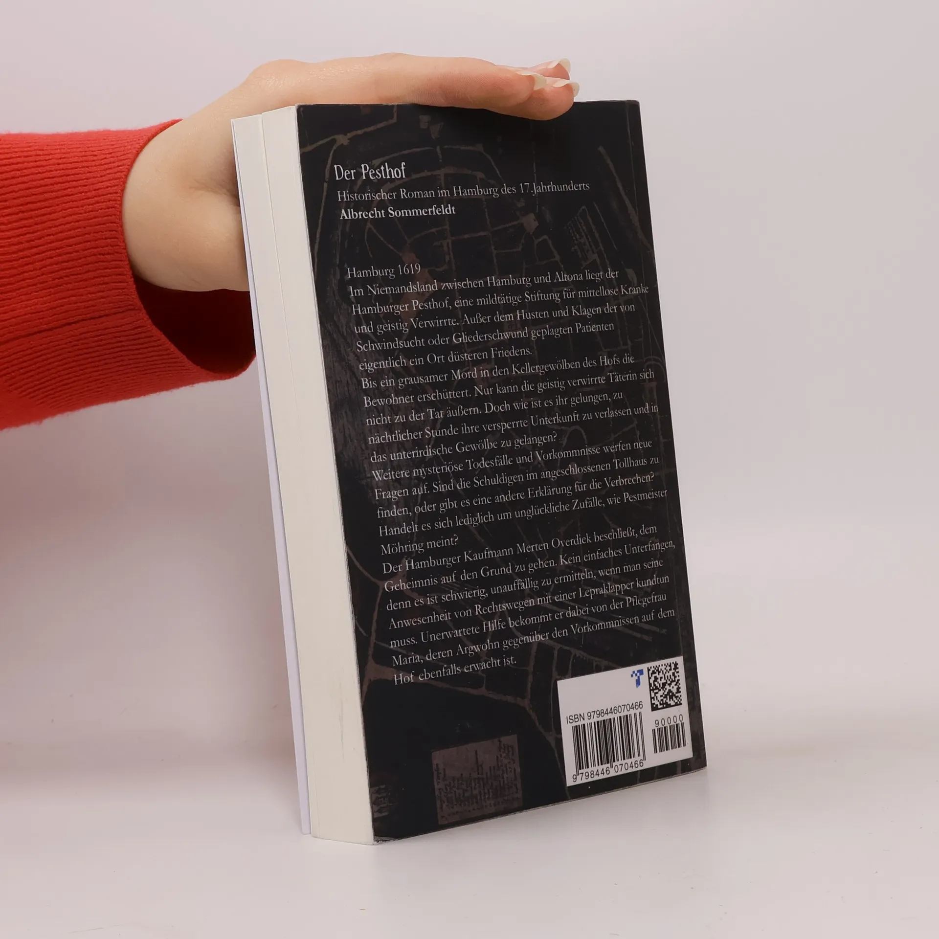 Hamburg 1619Im Niemandsland zwischen Hamburg und Altona liegt der Hamburger Pesthof, eine mildtätige Stiftung für mittellose Kranke und geistig Verwirrte. Außer dem Husten und Klagen der von Schwindsucht oder Gliederschwund geplagten Patienten eigentlich ein Ort düsteren Friedens.Bis ein grausamer Mord in den Kellergewölben des Hofs die Bewohner erschüttert. Nur kann die geistig verwirrte Täterin sich nicht zu der Tat äußern. Doch wie ist es ihr gelungen, zu nächtlicher Stunde ihre versperrte Unterkunft zu verlassen und in das unterirdische Gewölbe zu gelangen?Weitere mysteriöse Todesfälle und Vorkommnisse werfen neue Fragen auf. Sind die Schuldigen im angeschlossenen Tollhaus zu finden, oder gibt es eine andere Erklärung für die Verbrechen? Handelt es sich lediglich um unglückliche Zufälle, wie Pestmeister Möhring meint?Der Hamburger Kaufmann Merten Overdiek beschließt, dem Geheimnis auf den Grund zu gehen. Kein einfaches Unterfangen, denn es ist schwierig, unauffällig zu ermitteln, wenn man seine Anwesenheit von Rechtswegen mit einer Lepraklapper kundtun muss. Unerwartete Hilfe bekommt er dabei von der Pflegefrau Maria, deren Argwohn gegenüber den Vorkommnissen auf dem Hof ebenfalls erwacht ist.