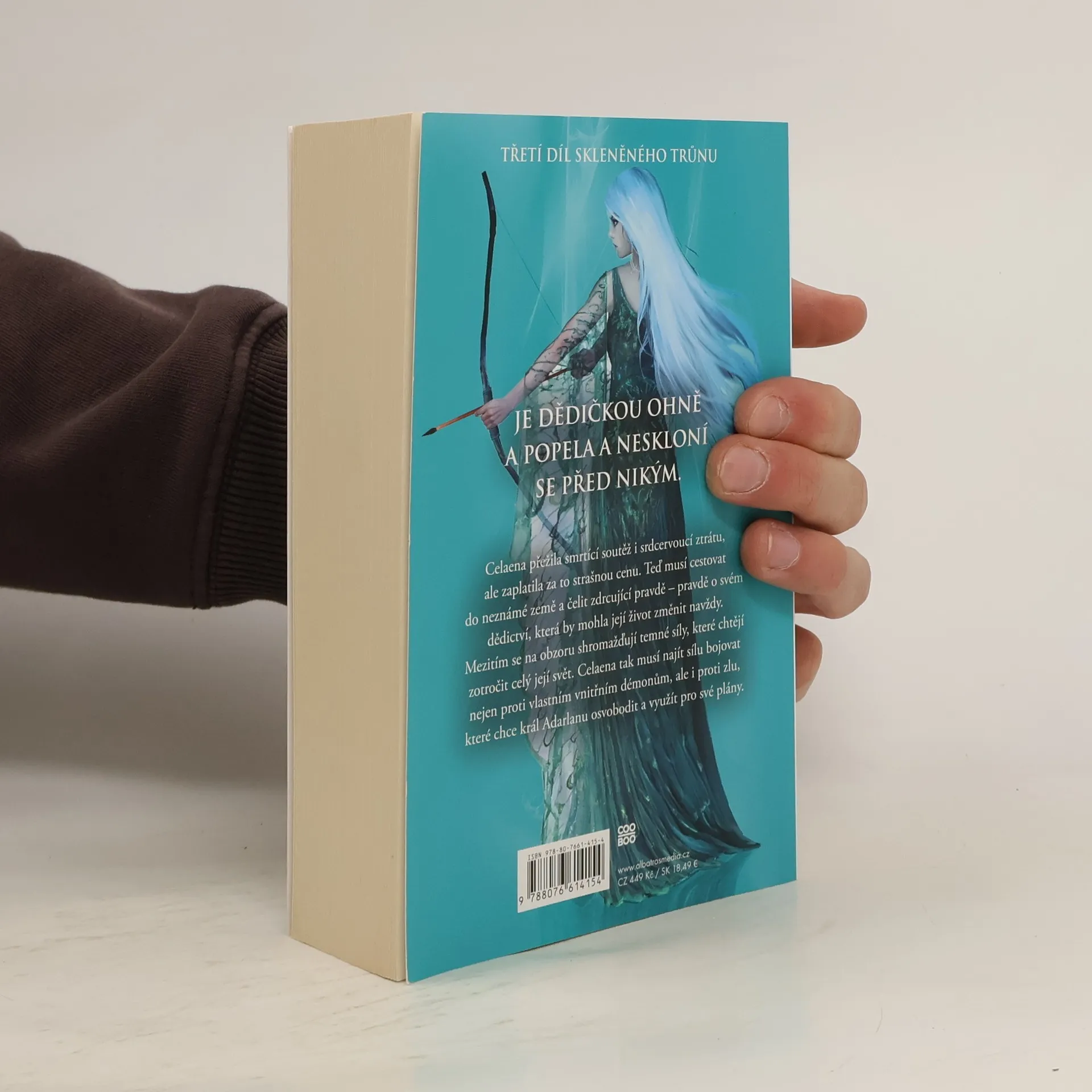 Je dědičkou ohně a popela a neskloní se před nikým … Třetí díl bestsellerové série Skleněný trůn. Celaena přežila smrtící soutěž i srdcervoucí ztrátu. Teď musí cestovat do neznámé země a čelit zdrcující pravdě o svém dědictví. O dědictví, které by mohlo navždy změnit její život. Mezitím se na obzoru shromažďují temné síly toužící po zotročení celého jejího světa. Celaena tak musí najít sílu bojovat nejen proti vlastním vnitřním démonům, ale i proti zlu, které chce král Adarlanu využít pro své plány. Dědička ohně a popela se ale před nikým neskloní! Třetí díl bestsellerové série Skleněný trůn. Celaena přežila smrtící soutěž i srdcervoucí ztrátu, ale zaplatila za to strašnou cenu. Teď musí cestovat do neznámé země a čelit zdrcující pravdě – pravdě o svém dědictví, která by mohla její život změnit navždy. Mezitím se na obzoru shromažďují temné síly, které chtějí zotročit celý její svět. Celaena tak musí najít sílu bojovat nejen proti vlastním vnitřním démonům, ale i proti zlu, které chce král Adarlanu osvobodit a využít pro své plány. Je dědičkou ohně a popela a neskloní se před nikým.