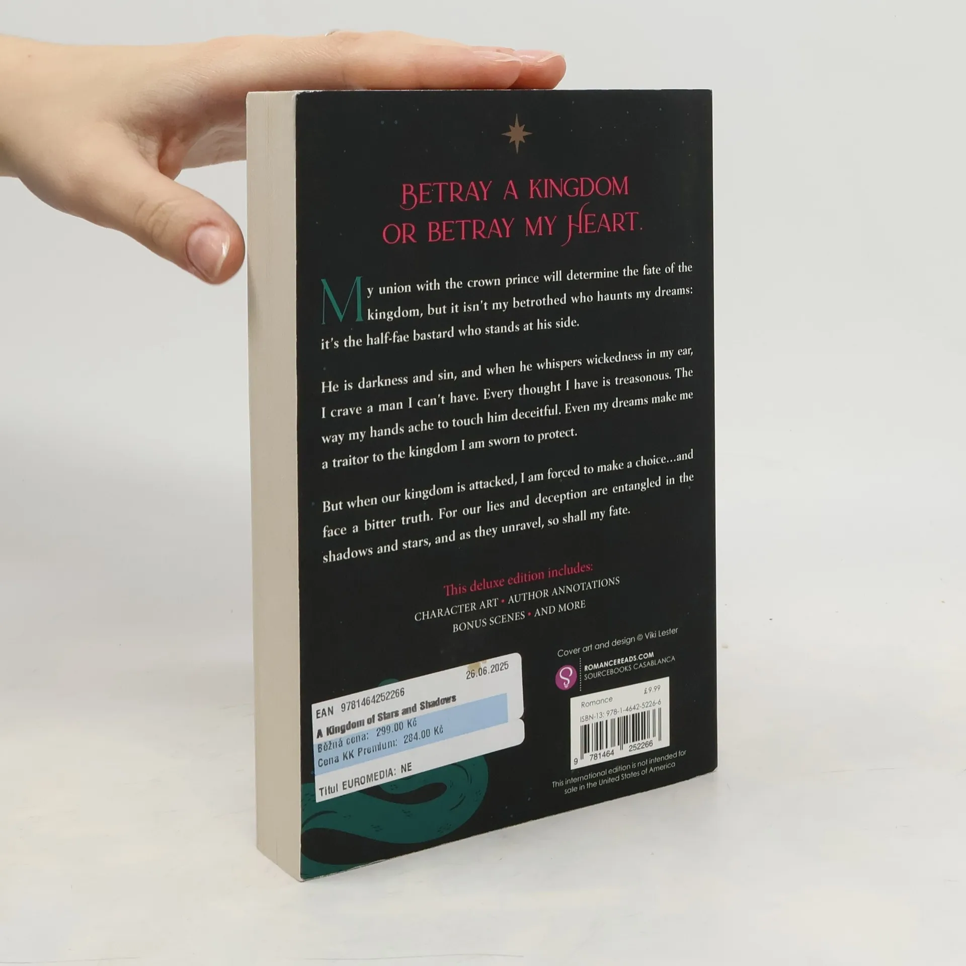 **SPECIAL DELUXE EDITION WITH SPRAYED EDGES, CHARACTER ART, MAPS, AND MORE.** Betray a kingdom or betray my heart. My union to the crowned prince will determine the fate of the kingdom, but it isn't my betrothed who haunts my dreams: it's the half-fae bastard who stands at his side. He is darkness and sin, and when he whispers wickedness in my ear, I crave a man I can't have. Every thought I have is treasonous. The way my hands ache to touch him deceitful. Even my dreams make me a traitor to the kingdom I am sworn to protect. But when our kingdom is attacked, I am forced to make a choice...and face a bitter truth. For our lies and deception are entangled in the shadows and stars, and as they unravel, so shall my fate. Deluxe Edition Features Include: Sprayed Edges Character Illustrations Map Bonus Scenes And More!