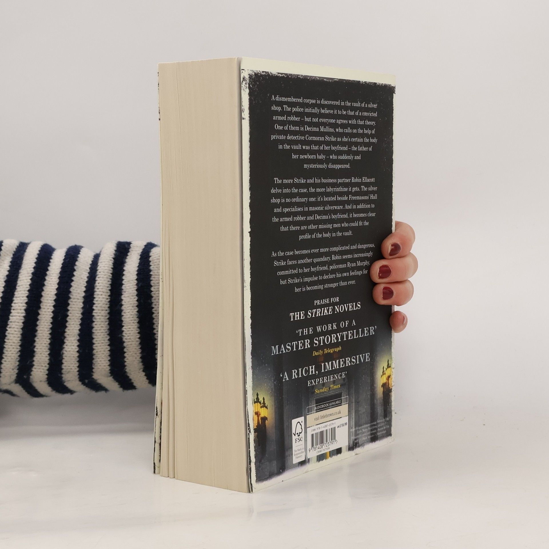 A dismembered corpse is discovered in the vault of a silver shop. The police initially believe it to be that of a convicted armed robber - but not everyone agrees with that theory. One of them is Decima Mullins, who calls on the help of private detective Cormoran Strike as she's certain the body in the silver vault was that of her boyfriend - the father of her newborn baby - who suddenly and mysteriously disappeared. The more Strike and his business partner Robin Ellacott delve into the case, the more labyrinthine it gets. The silver shop is no ordinary one: it's located beside Freemasons' Hall and specialises in Masonic silverware. And in addition to the armed robber and Decima's boyfriend, it becomes clear that there are other missing men who could fit the profile of the body in the vault. As the case becomes ever more complicated and dangerous, Strike faces another quandary. Robin seems increasingly committed to her boyfriend, policeman Ryan Murphy, but the impulse to declare his own feelings for her is becoming stronger than ever.