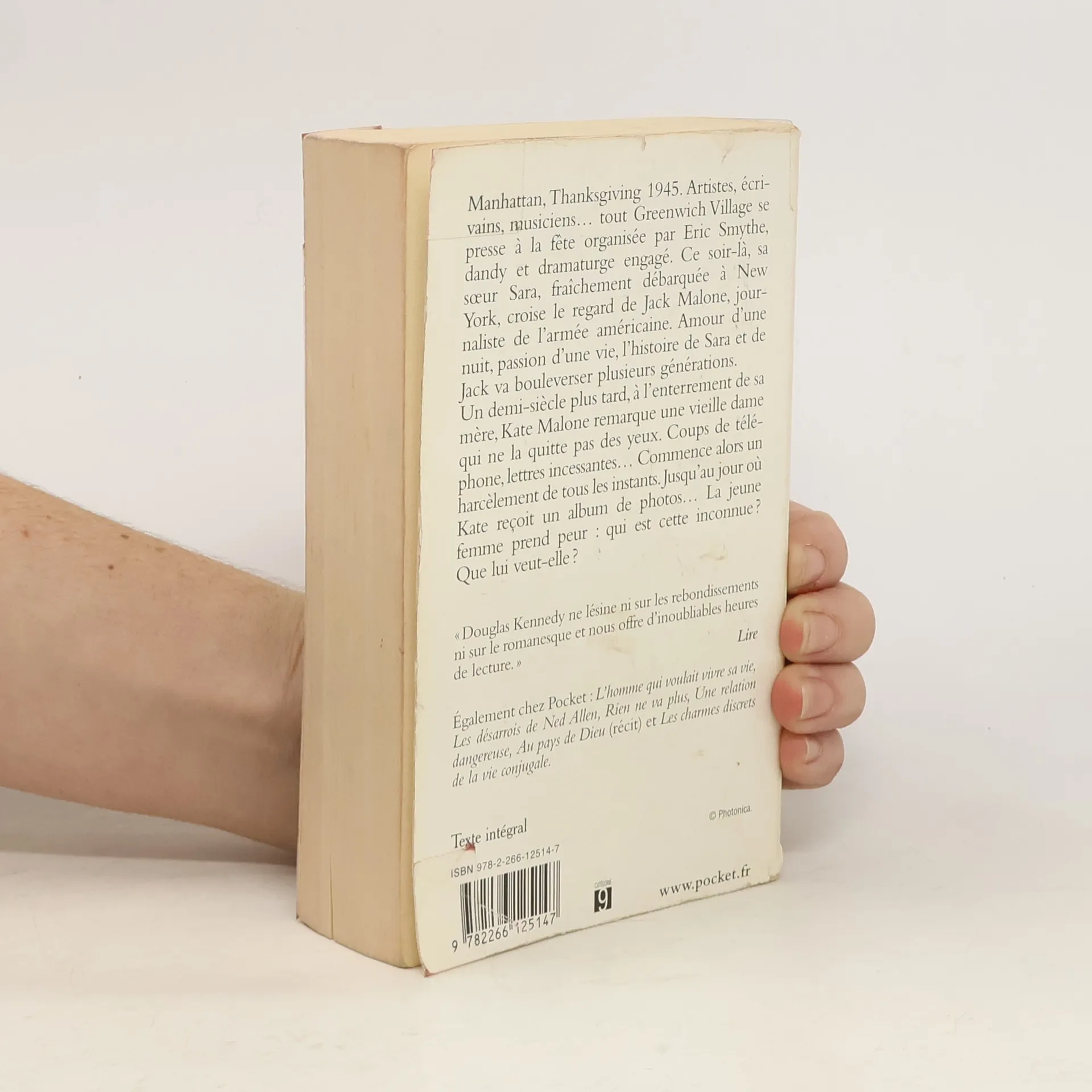 Manhattan, Thanksgiving 1945. Artistes, écrivains, musiciens... tout Greenwich Village se presse à la fête organisée par Eric Smythe, dandy et dramaturge engagé. Ce soir-là, sa sœur Sara, fraîchement débarquée à New York, croise le regard de Jack Malone, journaliste de l'armée américaine. Amour d'une nuit, passion d'une vie, l'histoire de Sara et Jack va bouleverser plusieurs générations. Un demi-siècle plus tard, à l'enterrement de sa mère, Kate Malone remarque une vieille dame qui ne la quitte pas des yeux. Coups de téléphone, lettres incessantes... Commence alors un harcèlement de tous les instants. Jusqu'au jour où Kate reçoit un album de photos... La jeune femme prend peur : qui est cette inconnue ? Que lui veut-elle ?