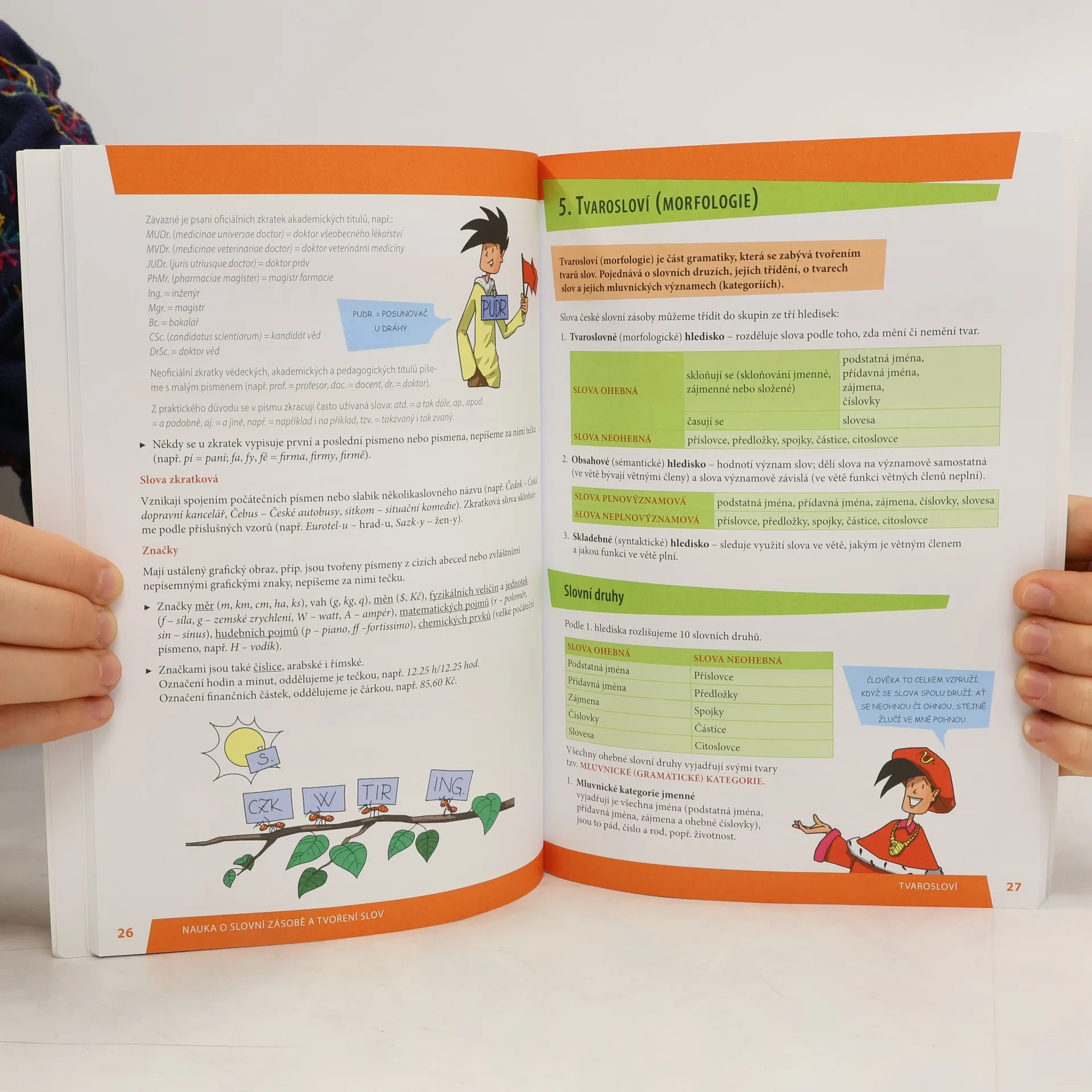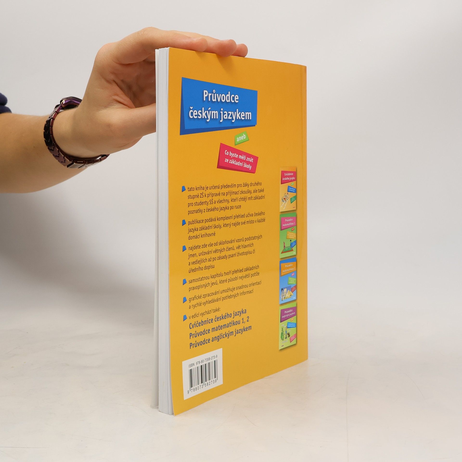 Publikace je určena nejen žákům základních škol a studentům prvních ročníků středních škol, ale všem, kteří si chtějí osvěžit základní poznatky z českého jazyka. Barevná poutavá kniha s atraktivní grafickou úpravou typu rodinná encyklopedie. Publikace je určena nejen žákům základních škol a studentům prvních ročníků středních škol, ale všem, kteří si chtějí osvěžit základní poznatky z českého jazyka. Najdete zde vše od skloňování vzorů podstatných jmen, určování větných členů, vět hlavních a vedlejších až po zásady psaní životopisu či úředního dopisu. Kniha je přehledně členěna do 8 kapitol, které jsou dále rozvedeny do dílčích podkapitol. V poslední 8. kapitole je obsažen přehled základních pravopisných jevů, které působí největší potíže. Grafickým odlišením stěžejního textu od doplňujících informací je zajištěna snadná orientace rychlé vyhledávání potřebných informací. Text doprovází průvodní kreslená postava, která se vyjadřuje k různým mluvnickým problémům a svými promluvami je odlehčuje.