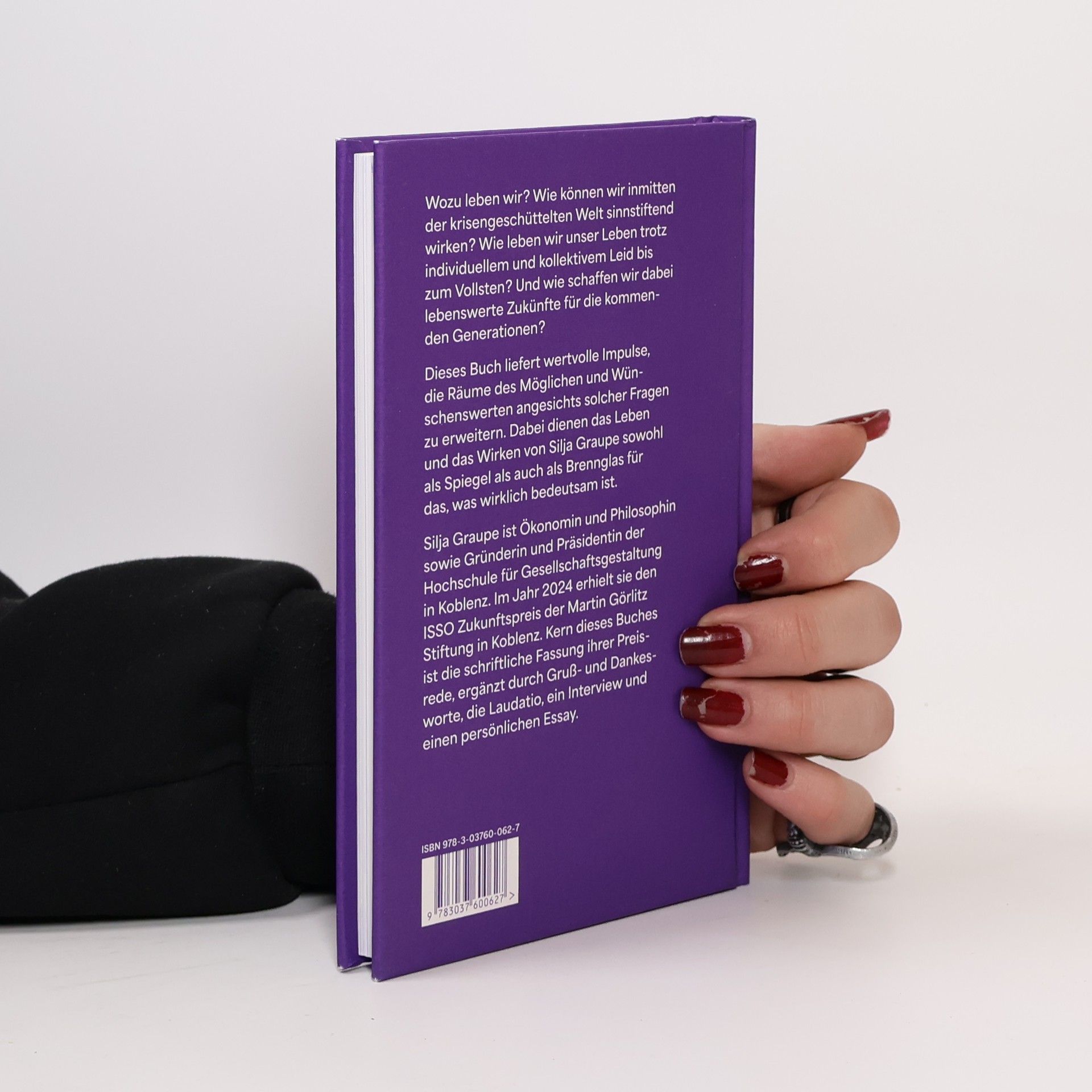 Wozu leben wir? Wie können wir inmitten der krisengeschüttelten Welt sinnstiftend wirken? Wie leben wir unser Leben trotz individuellem und kollektivem Leid bis zum Vollsten? Und wie schaffen wir dabei lebenswerte Zukünfte für die kommenden Generationen? Dieses Buch liefert wertvolle Impulse, die Räume des Möglichen und Wünschenswerten angesichts solcher Fragen zu erweitern. Dabei dienen das Leben und das Wirken von Silja Graupe sowohl als Spiegel als auch als Brennglas für das, was wirklich bedeutsam ist. Silja Graupe, 1975 in Hamburg geboren, ist Ökonomin und Philosophin sowie Gründerin und Präsidentin der Hochschule für Gesellschaftsgestaltung in Koblenz. Im Jahr 2024 erhielt sie den ISSO Zukunftspreis der Martin Görlitz Stiftung in Koblenz. Kern dieses Buches ist die schriftliche Fassung ihrer Preisrede, ergänzt durch Gruß- und Dankesworte, die Laudatio, ein Interview und einen persönlichen Essay.