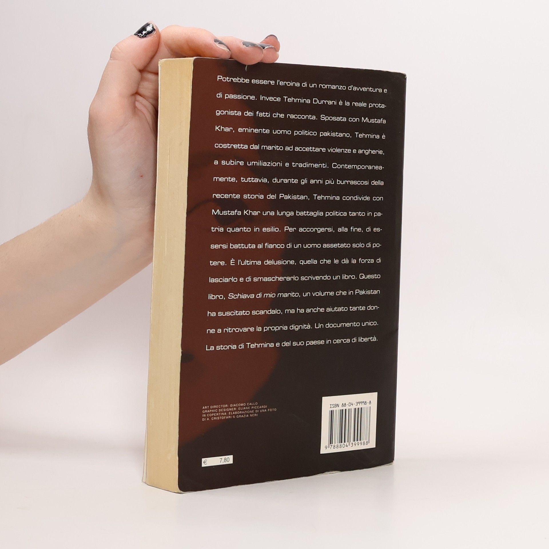 Potrebbe essere l'eroina di un romanzo d'avventura e di passione. Invece Tehmina Durrani è la vera protagonista dei fatti che racconta. Sposata con Mustafa Khar, eminente uomo politico pakistano, Tehmina è costretta dal marito ad accettare violenze e angherie, a subire umiliazioni e tradimenti. Tuttavia, durante gli anni più burrascosi della recente storia del Pakistan, Tehmina condivide con Mustafa Khar una lunga battaglia politica tanto in patria quanto in esilio. Per accorgersi, alla fine, di essersi battuta al fianco di un uomo assetato solo di potere. E' l'ultima delusione quella che le dà la forza di lasciarlo e di smascherarlo scrivendo un libro. Questo libro. Che in Pakistan ha suscitato scandalo, ma ha anche aiutato tante donne a ritrovare la propria dignità. Un documento unico. La storia di Tehmina e del suo Paese in cerca di libertà.
