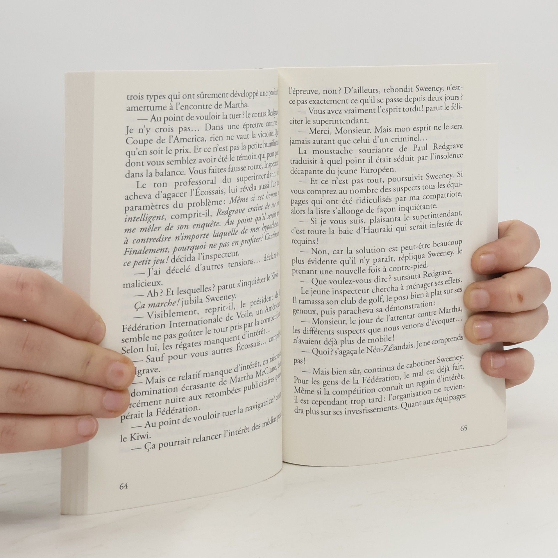 Mort au grand larguePartagez les émotions des compétiteurs de l'America's Cup !L'histoire :Un coup de feu ! L'océan Pacifique se fige dans le port d'Auckland...Qui en voulait à Martha McClane ?A la barre du Spirits of Scotland, la jeune navigatrice était sur le point de remporter la prestigieuse Coupe de l'America. Et de battre à domicile l'équipage du Néo-Zélandais Tom Read.Une fois de plus, les vents changeants de la baie d'Hauraki se montrent imprévisibles...Jalousie sportive, enjeu financier, ou déception amoureuse ?Dépêché sur la "Terre du Long Nuage Blanc", l'inspecteur Sweeney n'aura que deux jours pour démasquer l'assassin.Mission difficile car, aux antipodes, même la vérité semble marcher sur la tête..."Fraîcheur du Pacifique, vents violents, coups de barre, et coups de sang : les ingrédients d'un suspense fertile en émotions !""Ce roman s'inscrit dans la bonne tradition de la comédie policière, nous invitant à la fois à sourire et à nous interroger sur les faits criminels. C'est agréablement distrayant, très plaisant à lire, donc le but est atteint." (www.rayonpolar.com - C. Le Nocher)