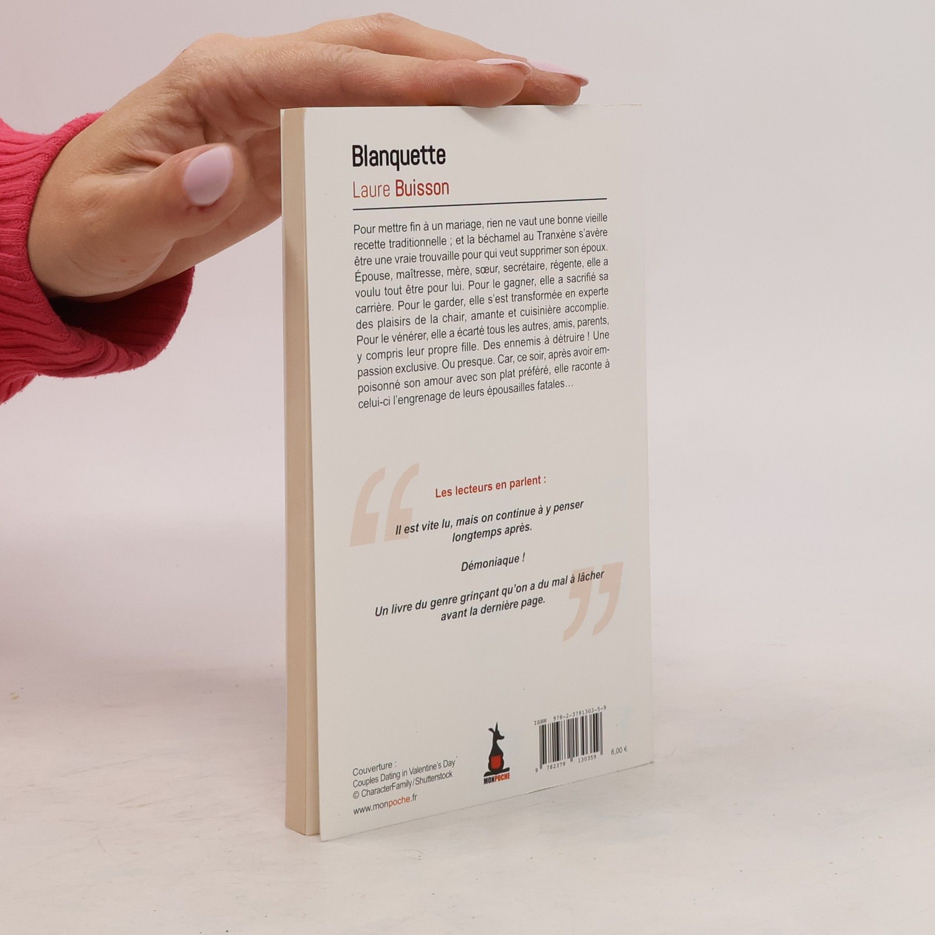 in8. Broché. Rien de tel qu'une bonne blanquette de veau pour assassiner son mari. Étonnant ? Non, si l'on sait ajouter dans la recette, à côté d'une masse de viande, d'un riz bien parfumé et de quelques légumes, du Tranxène en plusieurs cachets, écrasés jusqu'à ressembler à de la maïzena avant de tout laisser mitonner. Bien gentiment. Amoureusement. Après quoi, on passe le bouillon dans un fin linge blanc, on fait fondre le beurre dans une autre casserole, on ajoute encore une cuillerée à soupe de Tranxène. À la place de la fécule. Doucement on mélange le tout, on remue jusqu'à ébullition, on surveille l'éventuelle formation de grumeaux. C'est un moment important, surtout quand il s'agit d'empoisonner son mari. Un brin de céleri pour annihiler l'âcreté du somnifère et le tour est joué, le plat dressé. Pour son premier roman, Laure Buisson a choisi l'amour. Pas n'importe quel amour, celui d'une femme qui se décide, après 32 ans, à en finir avec un homme qu'elle aime trop. En finir, avec lui. Femme sacrifiée à l'autel du mariage, bonne mère et sublime cuisinière, la narratrice brosse, en une langue savoureuse, implacable, forcément implacable, et limpide, maintenue par le fil de l'émotion, un portrait de l'amour qui fait d'elle-même une formidable criminelle. -Céline Darner