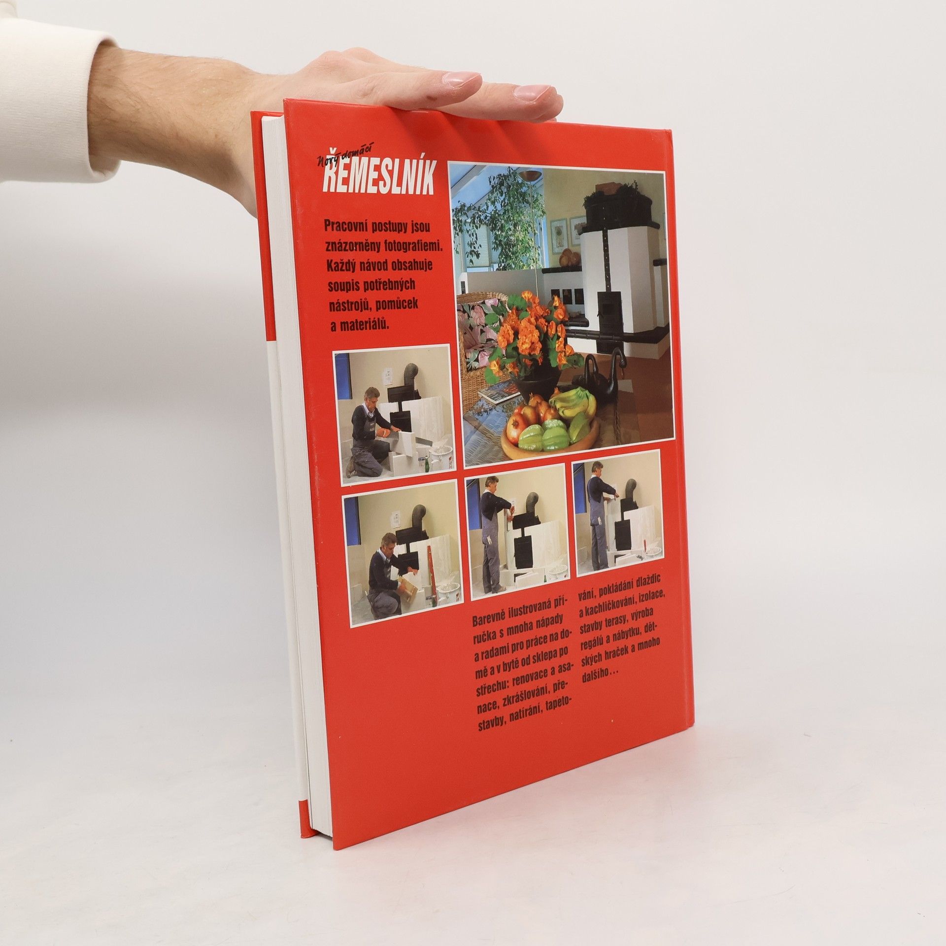 Pracovní postupy jsou znázorněny fotografiemi. Každý návod obsahuje soupis potřebných nástrojů, pomůcek a materiálů. Barevně ilustrovaná příručka s mnoha nápady a radami pro práce na domě a v bytě od sklepa po střechu: renovace a asanace, zkrášlování, přestavby, natírání, tapetování, pokládání dlaždic a kachličkování, izolace, stavby terasy, výroba regálů a nábytku, dětských hraček a mnoho dalšího ...
