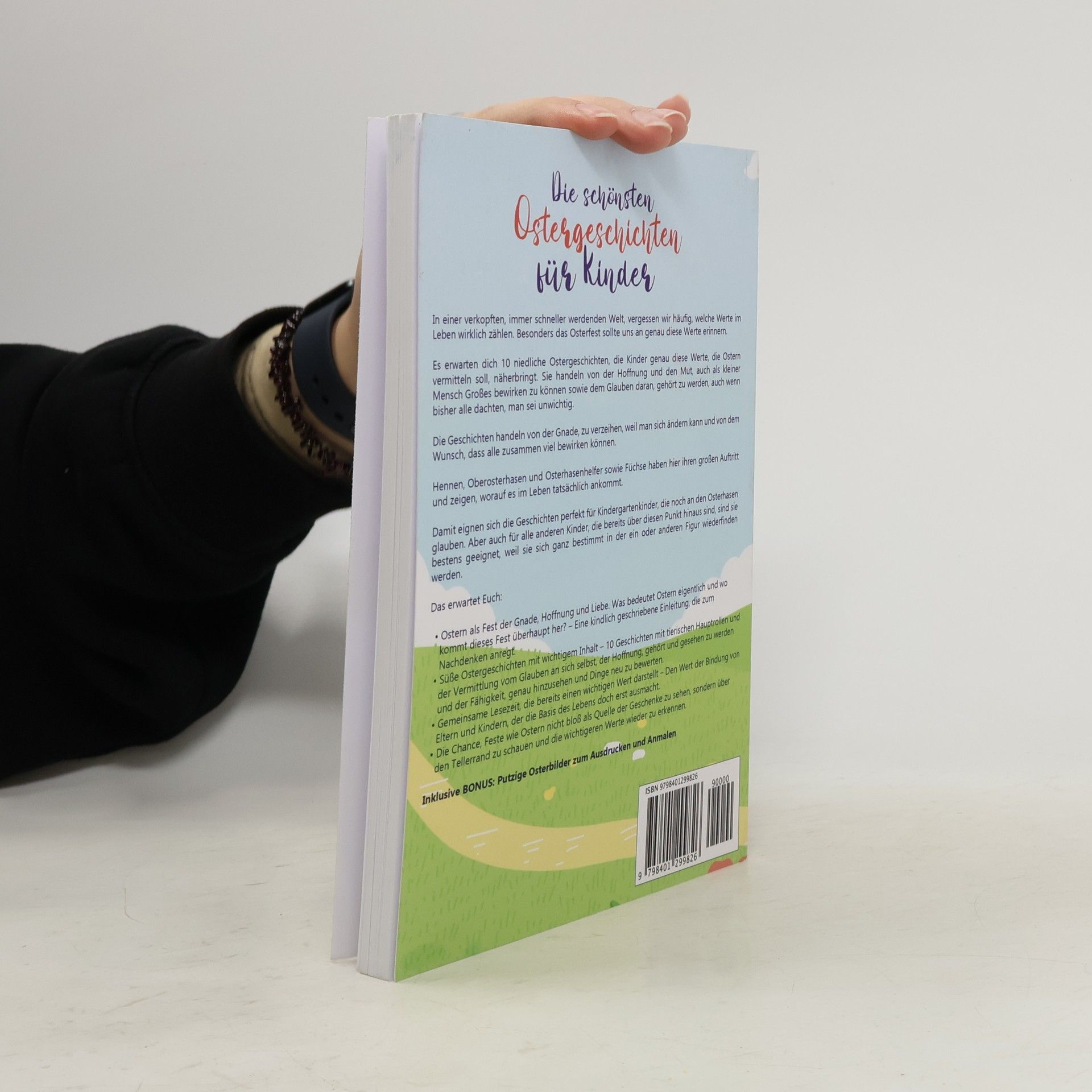 Inklusive Putzige Osterbilder zum Ausdrucken und AnmalenIn einer verkopften, immer schneller werdenden Welt, vergessen wir häufig, welche Werte im Leben wirklich zählen.Besonders das Osterfest sollte uns an genau diese Werte erinnern.Es erwarten dich 10 niedliche Ostergeschichten, die Kinder genau diese Werte, die Ostern vermitteln soll, näherbringt. Sie handeln von der Hoffnung und den Mut, auch als kleiner Mensch Großes bewirken zu können sowie dem Glauben daran, gehört zu werden, auch wenn bisher alle dachten, man sei unwichtig.Die Geschichten handeln von der Gnade, zu verzeihen, weil man sich ändern kann und von dem Wunsch, dass alle zusammen viel bewirken können.Hennen, Oberosterhasen und Osterhasenhelfer sowie Füchse haben hier ihren großen Auftritt und zeigen, worauf es im Leben tatsächlich ankommt.Damit eignen sich die Geschichten perfekt für Kindergartenkinder, die noch an den Osterhasen glauben. Aber auch für alle anderen Kinder, die bereits über diesen Punkt hinaus sind, sind sie bestens geeignet, weil sie sich ganz bestimmt in der ein oder anderen Figur wiederfinden werden.Das erwartet Sichern Sie sich jetzt dieses Buch mit den wundervollen Geschichten.Kicken Sie auf „Jetzt kaufen“ und lassen Sie ein kleines Wunder wahr werden - das ideale Geschenk zu Ostern!