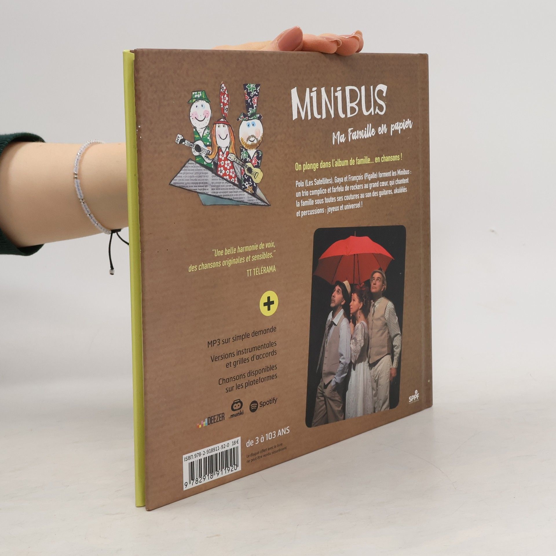 On plonge dans l'album de famille... en chansons !Surpris par la pluie, les trois Minibus trouvent refuge dans une maison au fond des bois et, pour se réchauffer, sortent leurs instruments de musique. Le trio chante 10 chansons sur le thème de la famille (Dans ma bulle, Ma famille en papier, La boîte à boutons), des émotions (Emoticones, Couleurs pastel...), de la Nature (Facile à danser, Le bois mouillé...). Chaque double-page illustre, en papier découpé et autres pliages naïfs, les textes fins qui explorent les liens entre les générations : une ode à l'enfance tout en clins d'œil poétiques et drôles.LE CD : Les rythmes entraînants et joyeux des guitares, ukulélés et percussions invitent à la danse et les arrangements subtils laissent une belle place aux voix mélodieuses et harmonisées d'un trio farfelu et complice.
