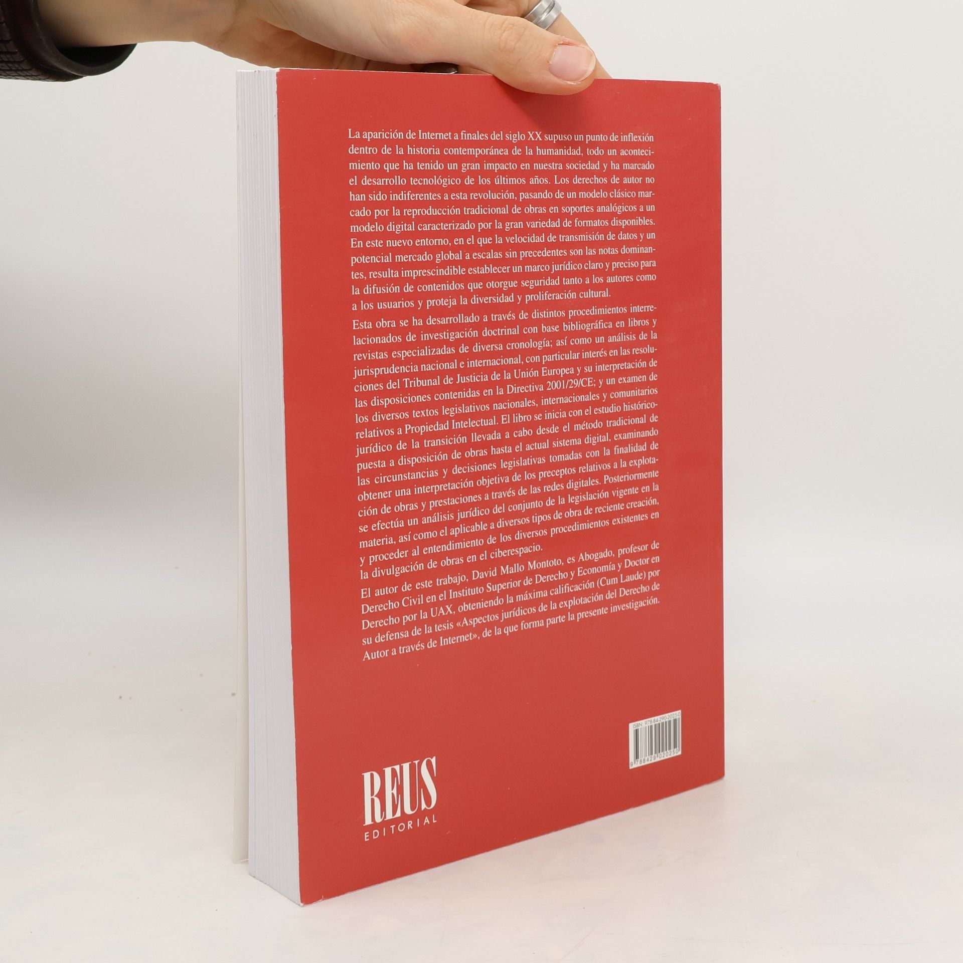 La aparición de Internet a finales del siglo XX marcó un cambio decisivo en la historia reciente. Este avance transformó la comunicación, la economía y la cultura, impulsando un desarrollo tecnológico sin precedentes. Los derechos de autor también se adaptaron: del modelo clásico en soportes analógicos se pasó a un entorno digital caracterizado por la rapidez y la diversidad de formatos. En este contexto global es esencial un marco jurídico claro que garantice seguridad a autores y usuarios y proteja la diversidad cultural. La obra se basa en un estudio doctrinal y jurisprudencial centrado en la Directiva 2001/29/CE y en resoluciones del Tribunal de Justicia de la Unión Europea, además del análisis de normas nacionales e internacionales sobre Propiedad Intelectual. Examina la transición del sistema tradicional de difusión de obras al modelo digital actual y el impacto jurídico de las nuevas formas de creación y comunicación en el ciberespacio.
