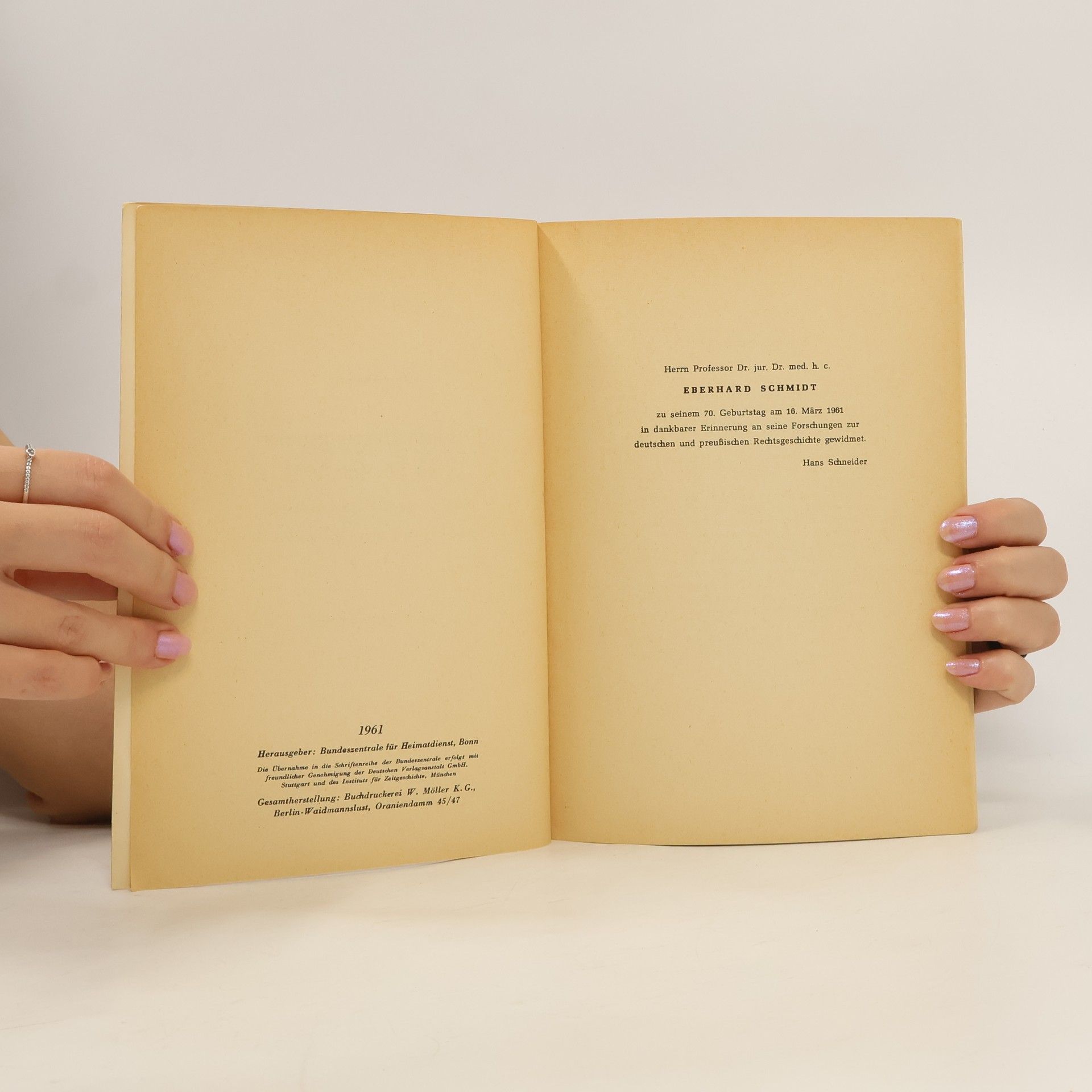 Schriftenreihe der Bundeszentrale für Heimatdienst, Hans Schneider