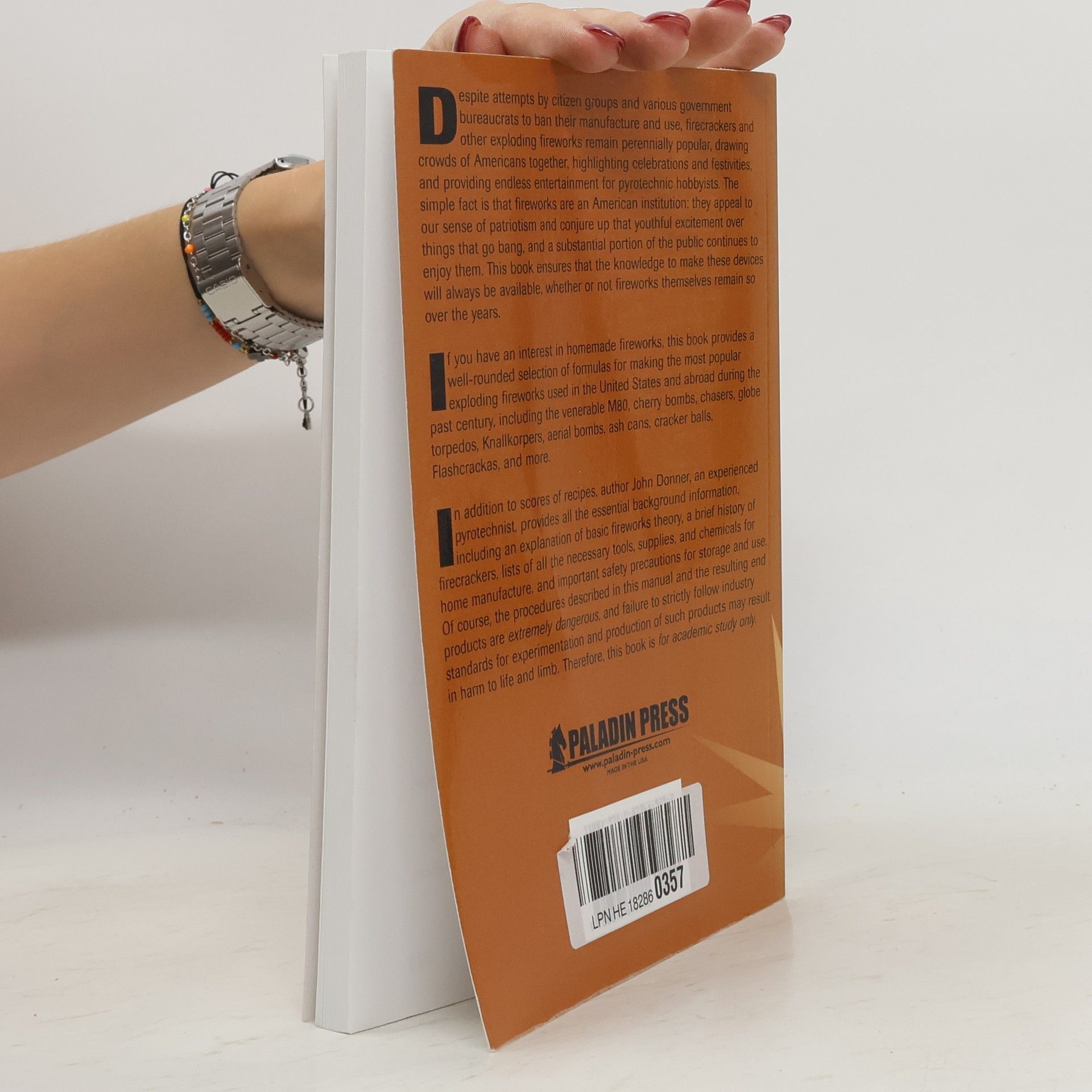 This book offers a well-rounded selection of reliable, well-researched formulas for the most popular exploding fireworks, including M80s, cherry bombs, ash cans, chasers, globe torpedoes, Knallkorpers, aerial bombs, cracker balls, Flashcrackas and more. For academic study only.