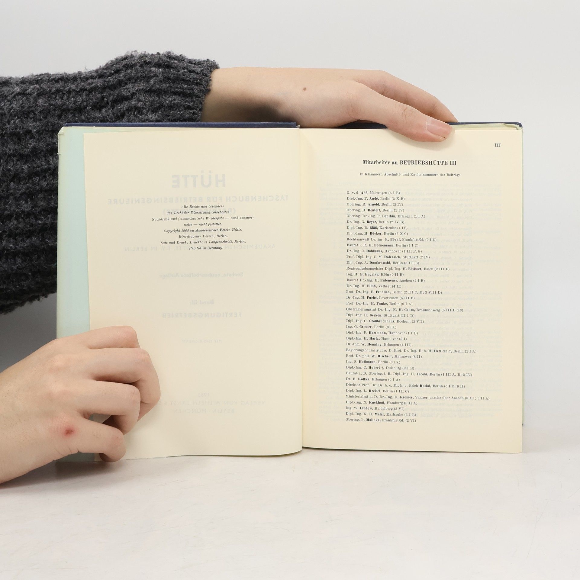 Nous avons un total de du titreHütte. Taschenbuch für Betriebsingenieure. Band III (1965 ).