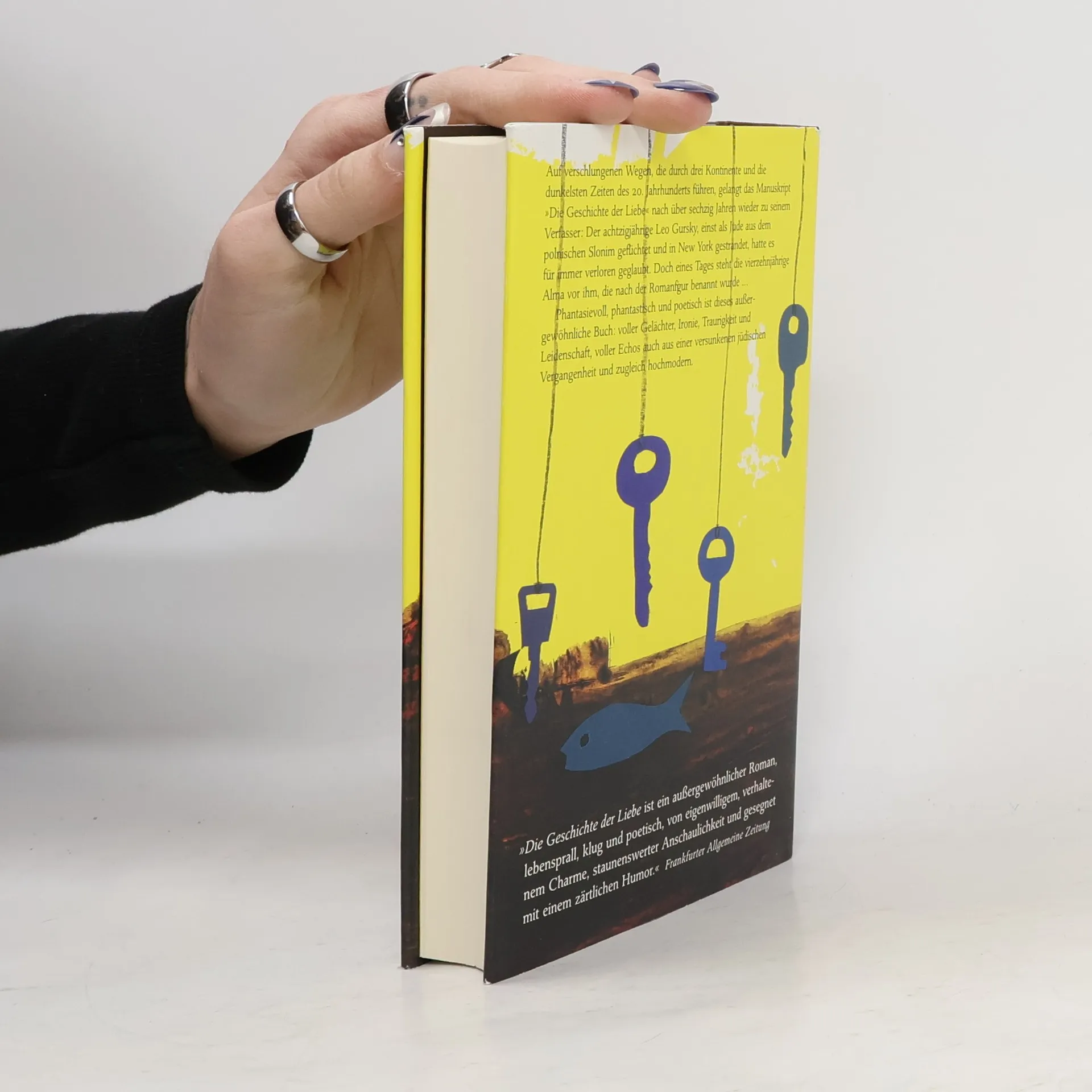 „Bezaubernd, zärtlich und sehr originell.“ (J. M. Coetzee)Ein verloren geglaubtes, fast 70 Jahre altes Manuskript steht im Mittelpunkt dieses Romans. Leo Gursky hat es als junger Mann in Polen geschrieben, für seine große Liebe Alma. Nun lebt er als einsamer alter Mann in New York. Er weiß es nicht, aber das Buch überstand den Holocaust, wob andere Liebesbande: die 14-jährige Alma ist nach einer seiner Figuren benannt. Und sie ist auf der Suche nach ihm.„Einfach anfangen zu lesen. Es ist wunderbar.“ (Stern)