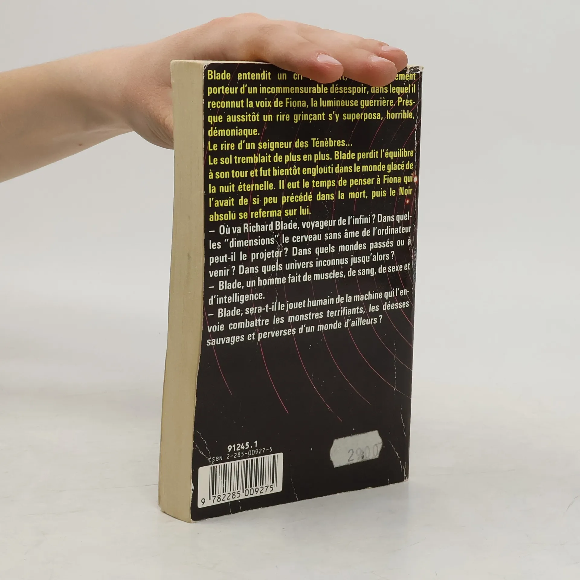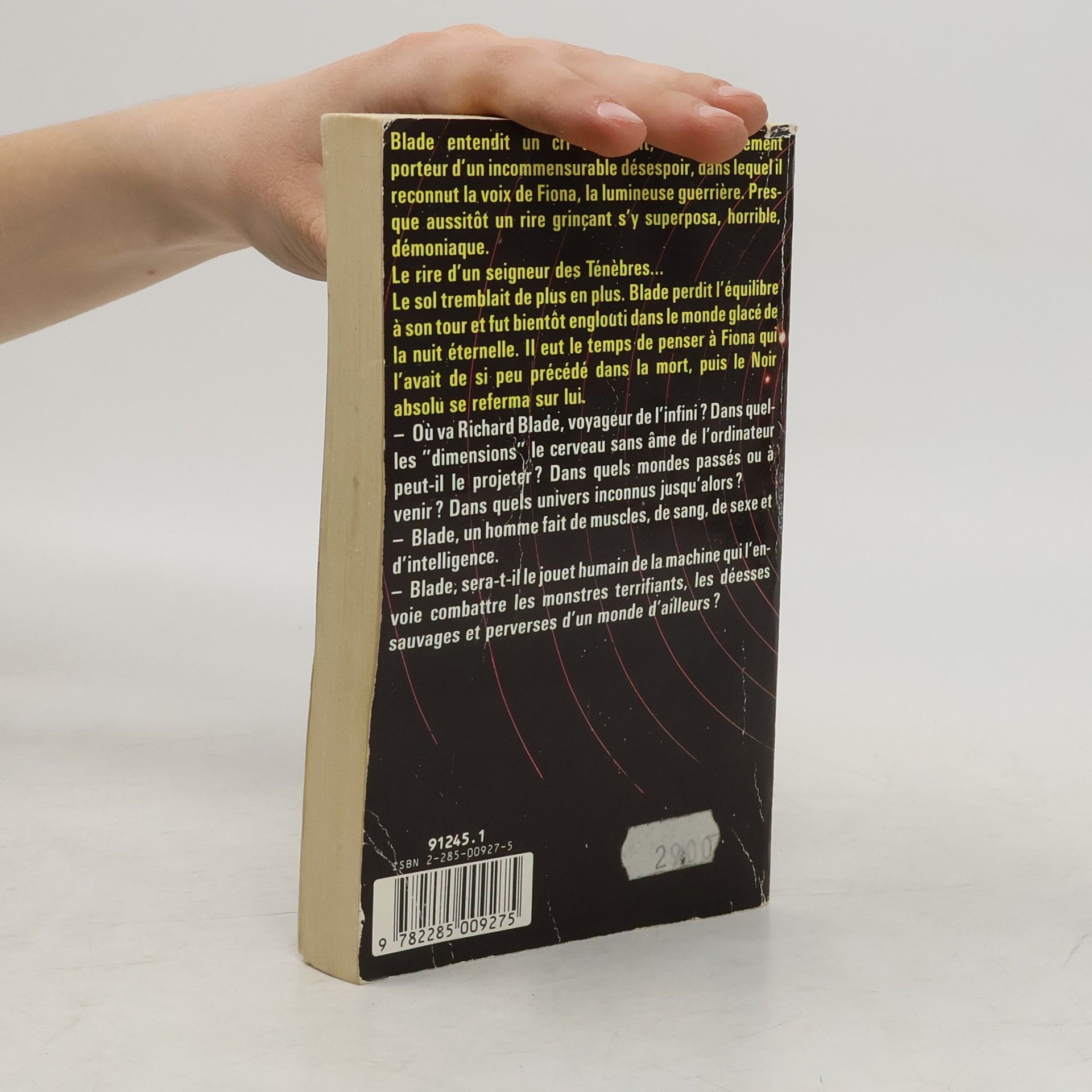 Blade entendit un cri déchirant, un gémissement porteur d'un incommensurable désespoir, dans lequel il reconnut la voix de Fiona, la lumineuse guerrière. Presque aussitôt un rire grinçant s'y superposa, horrible, démoniaque. Le rire d'un seigneur des Ténèbres... Le sol tremblait de plus en plus. Blade perdit l'équilibre à son tour et fut bientôt englouti dans le monde glacé, de la nuit éternelle. Il eut le temps de penser à Fiona qui l'avait de si peu précédé dans la mort, puis le Noir absolu se referma sur lui. - Où va Richard Blade, voyageur de l'infini ? Dans quelles "dimensions" le cerveau sans âme de l'ordinateur peut-il le projeter ? Dans quels mondes passés ou à venir ? Dans quels univers inconnus jusqu'alors ? - Blade, un homme fait de muscles, de sang, de sexe et d'intelligence. - Blade, sera-t-il le jouet humain de la machine qui l'envoie combattre les monstres terrifiants, les déesses sauvages et perverses d'un monde d'ailleurs ?