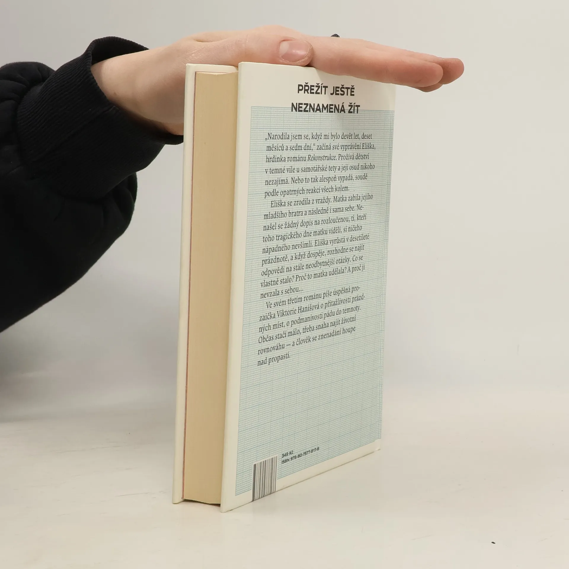 Přežít ještě neznamená žít „Narodila jsem se, když mi bylo devět let, deset měsíců a sedm dní,“ začíná své vyprávění Eliška, hrdinka románu Rekonstrukce. Eliška nyní přebývá v tichém domě své zapšklé tety a její život nikoho nezajímá. Nebo to tak alespoň vypadá, soudě podle opatrných reakcí všech okolo. Eliška se zrodila z vraždy. Matka zabila jejího mladšího bratra a následně i sama sebe. Do té doby přitom vedli průměrný život, v němž nic nenasvědčovalo nadcházející tragické události. Nenašel se ani žádný dopis na rozloučenou, svědkové posledního dne zamlklé matky s dítětem si pořádně ničeho nevšimli. Eliška proto vyrůstá s desetiletou prázdnotou místo dětství, kterou se v dospělosti rozhodne objasnit. Proč to matka udělala? A proč ji nevzala s sebou… V pořadí třetí román úspěšné prozaičky Viktorie Hanišové je o přitažlivosti prázdných míst, o podmanivosti pádu do temnoty. Občas stačí málo, třeba snaha najít životní rovnováhu — a člověk se znenadání kýve nad propastí.