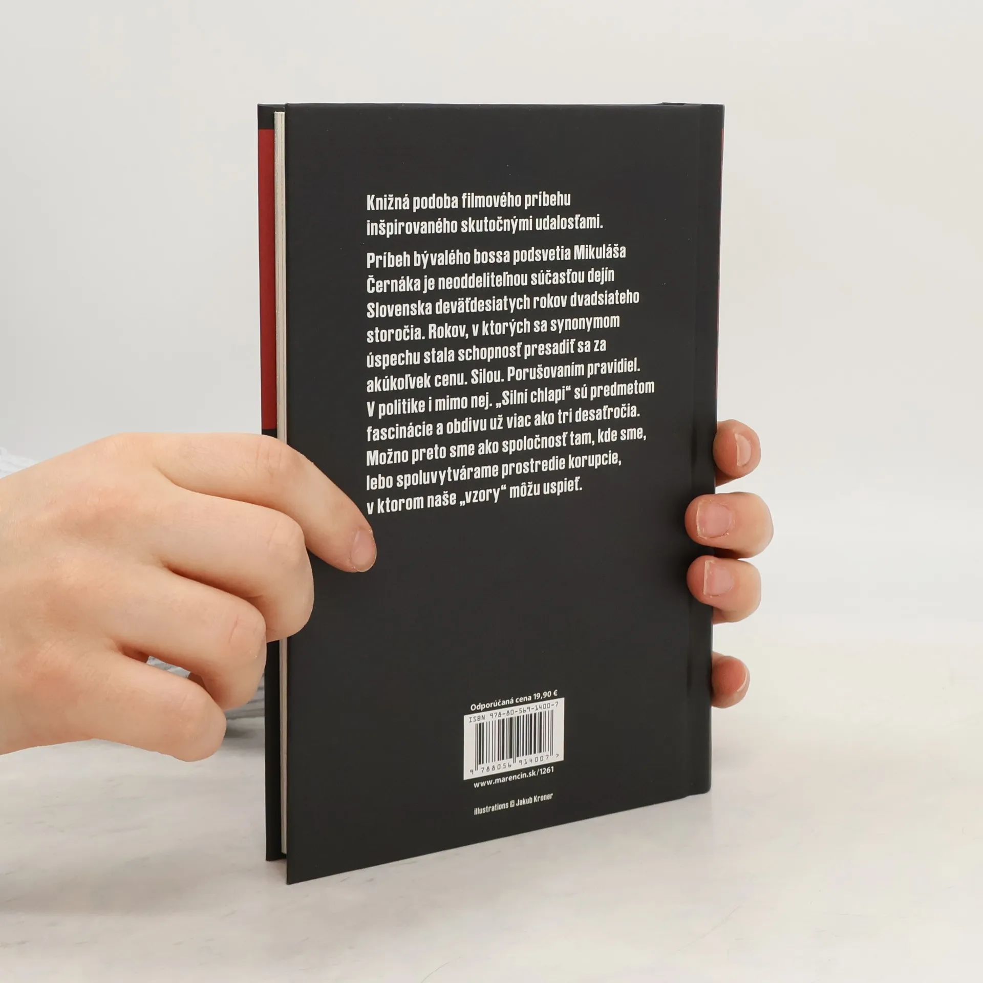 Knižná podoba filmového príbehu inšpirovaného skutočnými udalosťami. Príbeh bývalého bossa podsvetia Mikuláša Černáka je neoddeliteľnou súčasťou dejín Slovenska deväťdesiatych rokov dvadsiateho storočia. Rokov, v ktorých sa synonymom úspechu stala schopnosť presadiť sa za akúkoľvek cenu. Silou. Porušovaním pravidiel. V politike i mimo nej. „Silní chlapi“ sú predmetom fascinácie a obdivu už viac ako tri desaťročia. Možno preto sme ako spoločnosť tam, kde sme, lebo spoluvytvárame prostredie korupcie, v ktorom naše „vzory“ môžu uspieť.