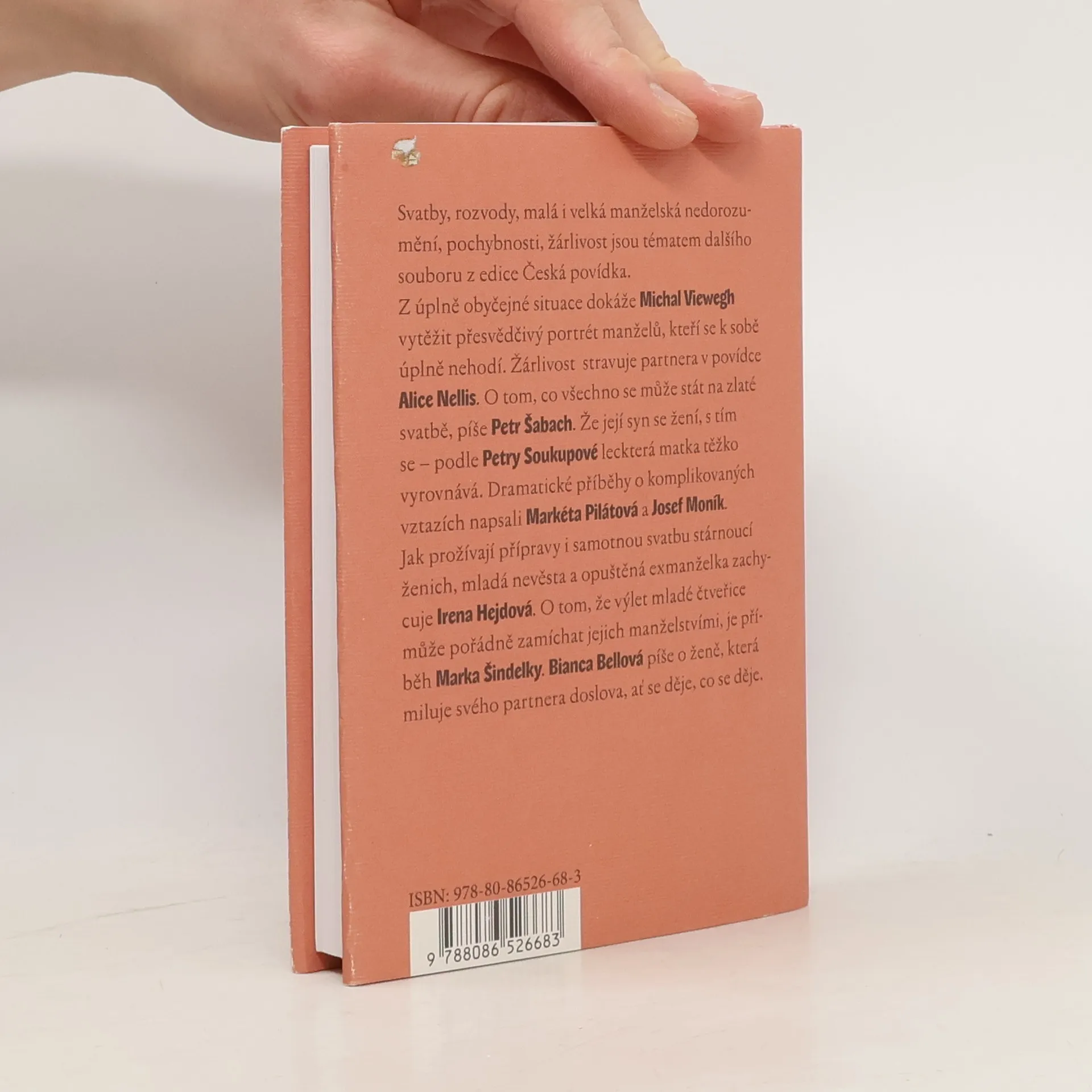 Svatby, rozvody, malá i velká manželská nedorozumění, pochybnosti, žárlivost jsou tématem dalšího souboru z edice Česká povídka. Z úplně obyčejné situace dokáže Michal Viewegh vytěžit přesvědčivý portrét manželů, kteří se k sobě úplně nehodí. Žárlivost stravuje partnera v povídce Alice Nellis. O tom, co všechno se může stát na zlaté svatbě, píše Petr Šabach. Že její syn se žení, s tím se - podle Petry Soukupové leckterá matka těžko vyrovnává. Dramatické příběhy o komplikovaných vztazích napsali Markéta Pilátová a Josef Moník. Jak prožívají přípravy i samotnou svatbu stárnoucí ženich, mladá nevěsta a opuštěná exmanželka zachycuje Irena Hejdová. O tom, že výlet mladé čtveřice může pořádně zamíchat jejich manželstvími, je příběh Marka Šindelky. Bianca Bellová píše o ženě, která miluje svého partnera doslova, ať se děje, co se děje.