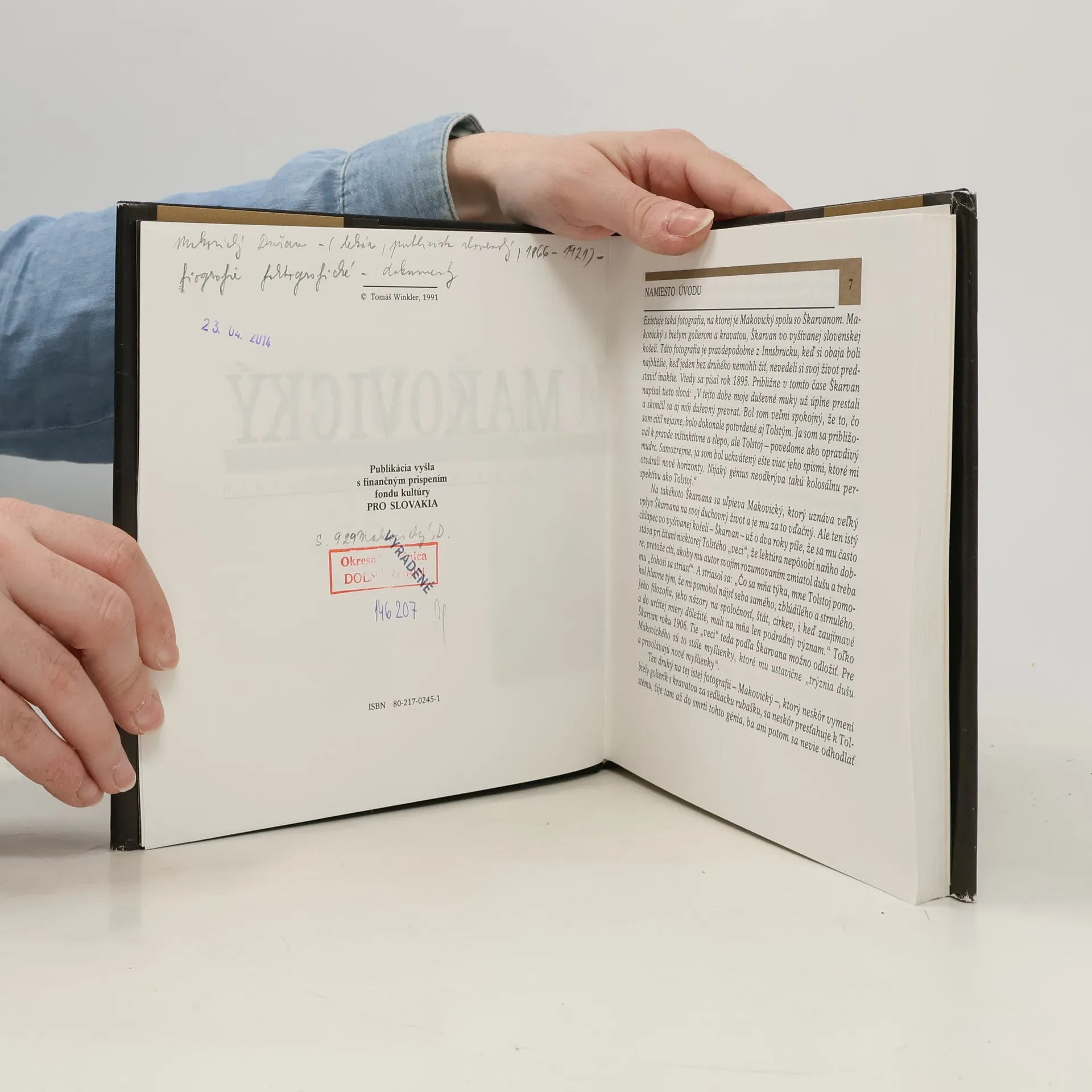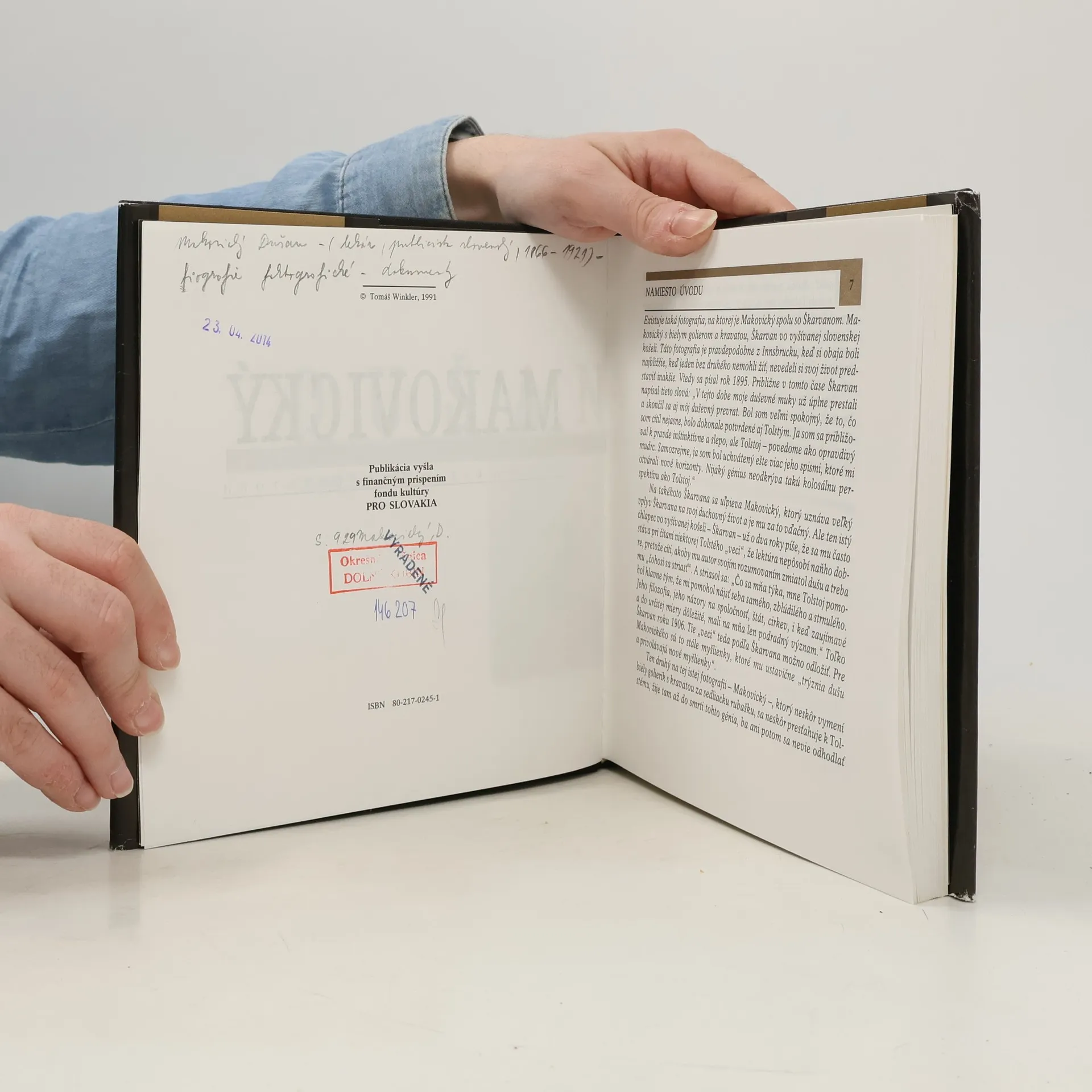 Monografia o živote významného slovenského tolstojovca, prekladateľa a osobného lekára Leva Nikolajeviča Tolstého. "Táto kniha je o Dušanovi Makovickom. Písal som ju s úprimným úsilím pochopiť jeho život, jeho hľadanie, pochopiť hĺbku tohto života, význam pre nás, ktorí, potĺkajúc sa svetom, hľadáme pevné hodnoty života, istoty, ale zároveň aj s úsilím spoznať veľkosť osobnej katastrofy Dušana Makovického," píše v úvodnom zamyslení "Namiesto úvodu" Tomáš Winkler. Publikácia vyšla s finančným prispením fondu kultúry PRO SLOVAKIA.