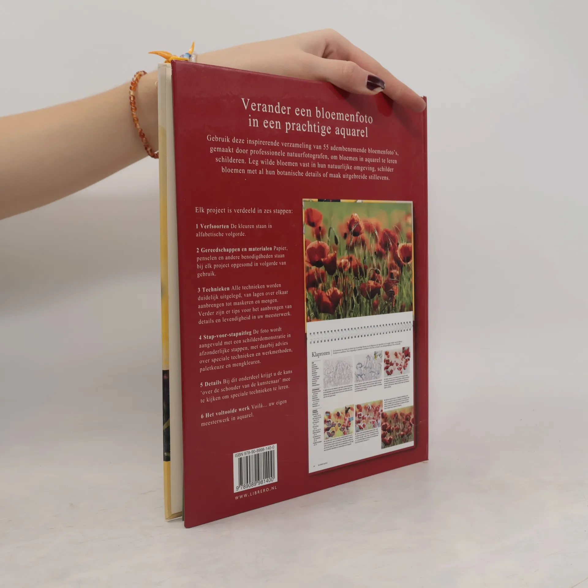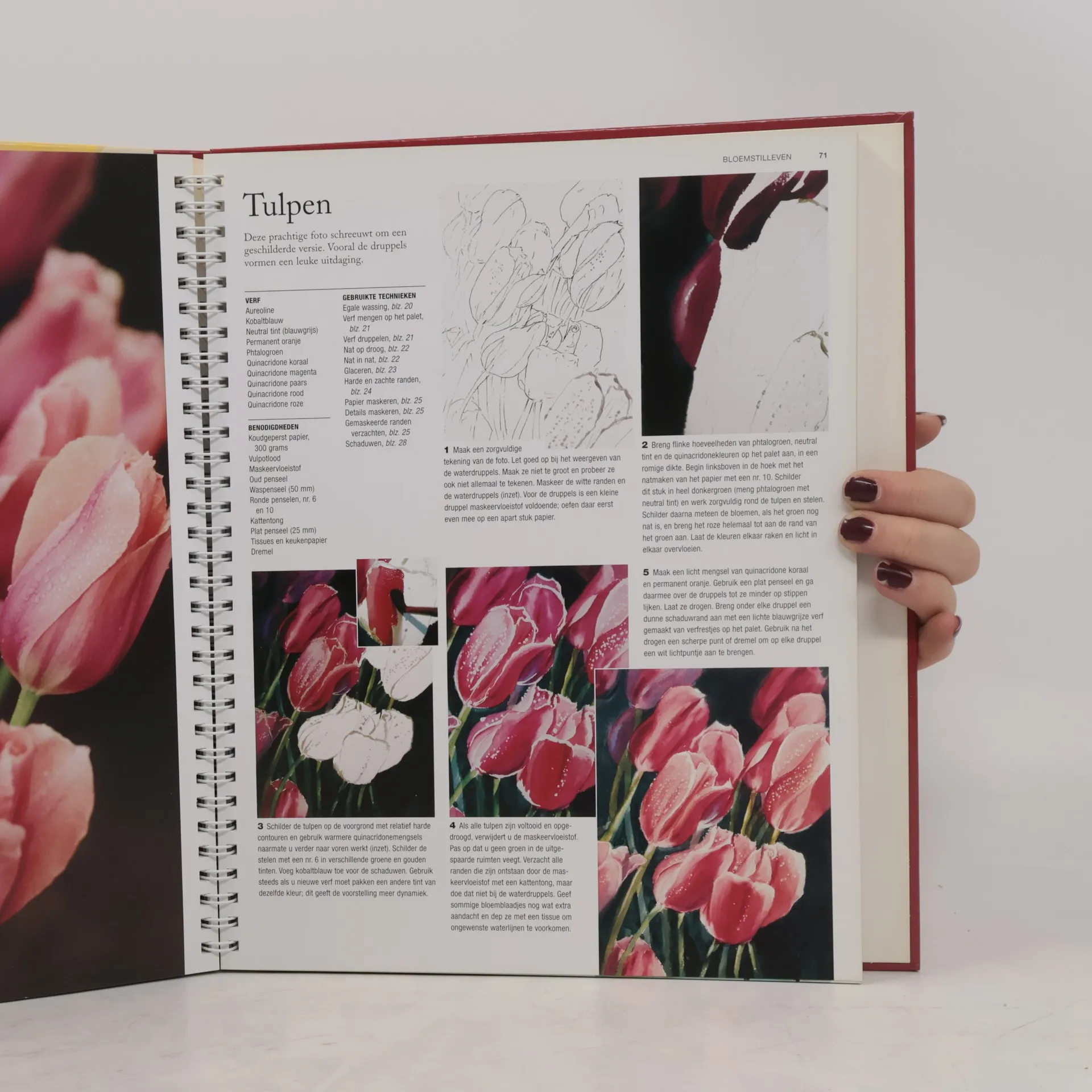 Instructieboek voor het aquarelleren van bloemen aan de hand van foto's.