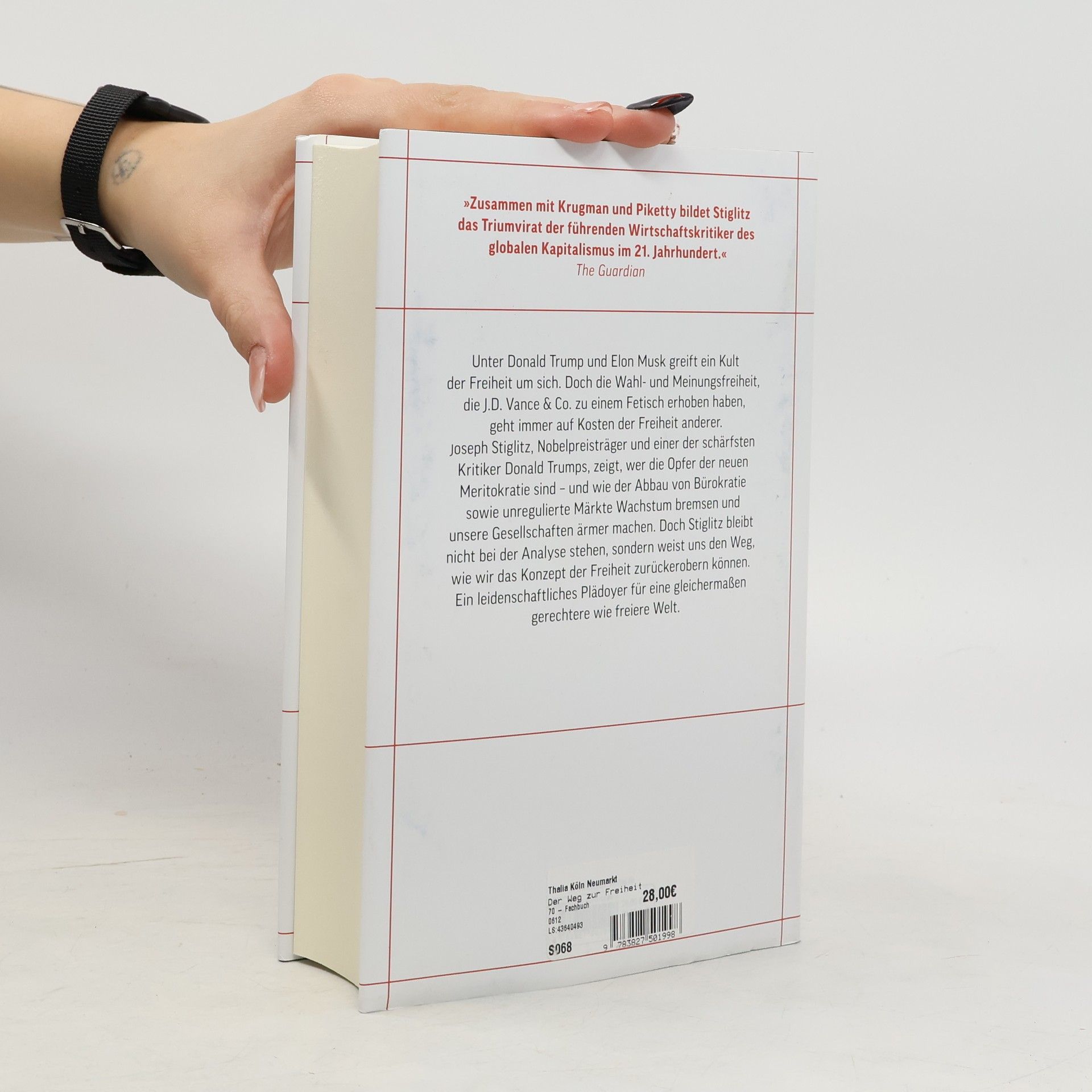 Gegen die Freiheit des Raubtierkapitalismus: Warum unsere Gesellschaft eine neue Wirtschaftspolitik braucht, um zukunftsfähig und gerechter zu werden Unter Donald Trump und Elon Musk greift ein Kult der Freiheit um sich. Doch die Wahl- und Meinungsfreiheit, die J.D. Vance & Co. zu einem Fetisch erhoben haben, geht immer auf Kosten der Freiheit anderer. Joseph Stiglitz, Nobelpreisträger und einer der schärfsten Kritiker Donald Trumps, zeigt, wer die Opfer der neuen Meritokratie sind – und wie der Abbau von Bürokratie sowie unregulierte Märkte Wachstum bremsen und unsere Gesellschaften ärmer machen. Doch Stiglitz bleibt nicht bei der Analyse stehen, sondern weist uns den Weg, wie wir das Konzept der Freiheit zurückerobern können. Ein leidenschaftliches Plädoyer für eine gleichermaßen gerechtere wie freiere Welt.