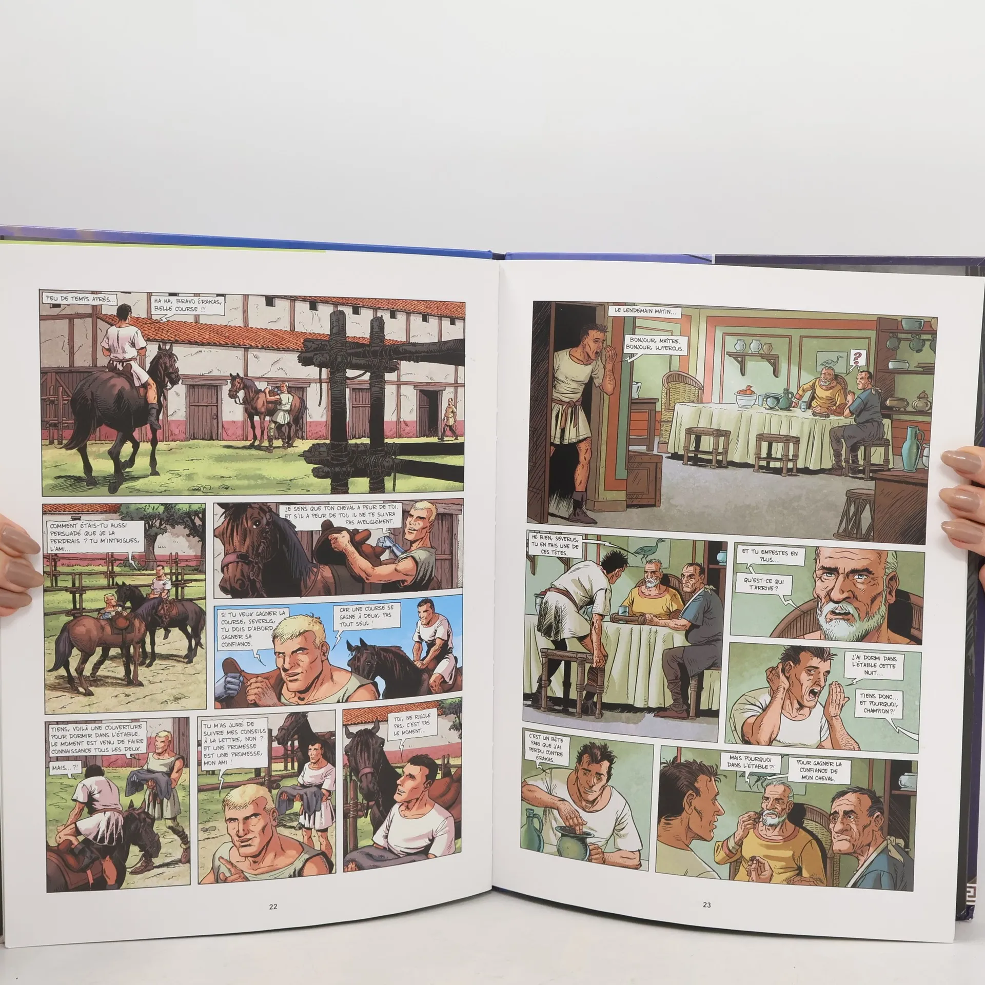 Chaque année, on vient de très loin pour assister aux Grands Jeux de Gisacum, cité sanctuaire gallo-romaine. Clou du spectacle, sa course de chevaux qui oppose les quatre factions rivales de la ville dans un combat aus-si spectaculaire qu'impitoyable ! cette année, l'événement est plus que jamais attendu... en effet, le grand champion severus concourt pour sa 10ème victoire de suite et les factions rivales sont bien sûr prêtes à tout pour éviter ce qui serait une humiliation pu-blique. Et si Erakas, esclave sarmate fraIchement arrivé, changeait le cours de l'histoire ? les sarmates n'ont-ils pas la réputation d'être les meilleurs cavaliers du monde ?