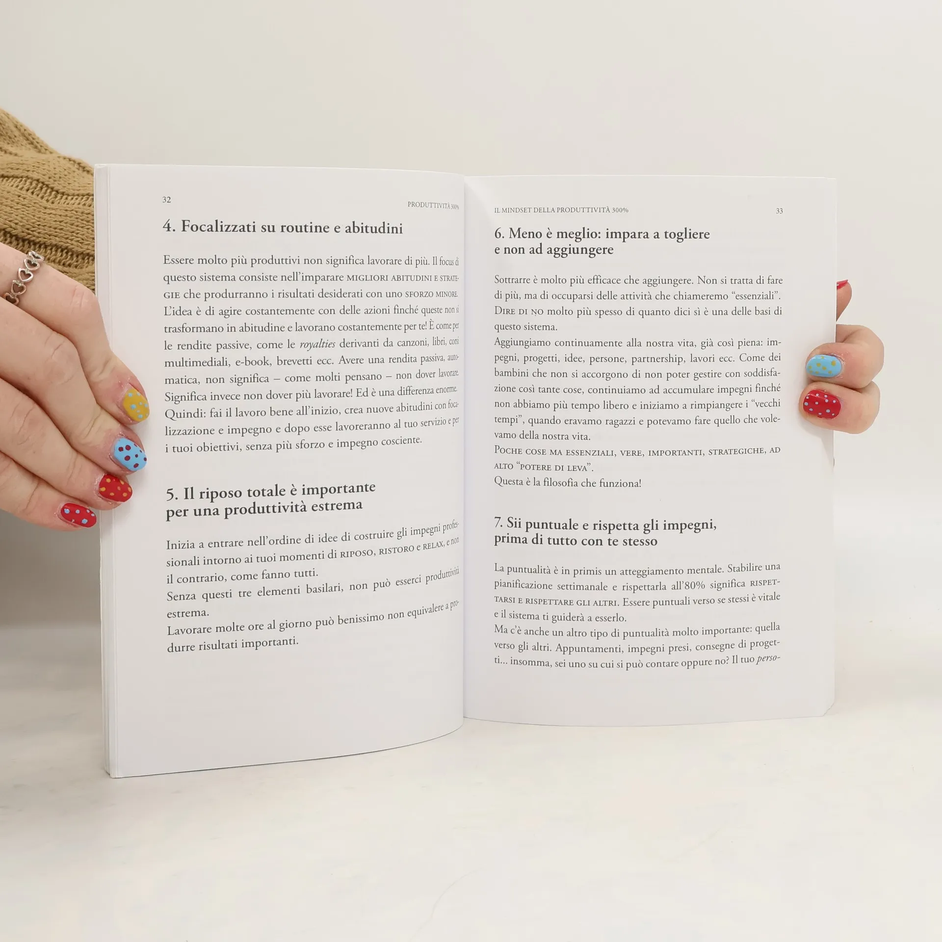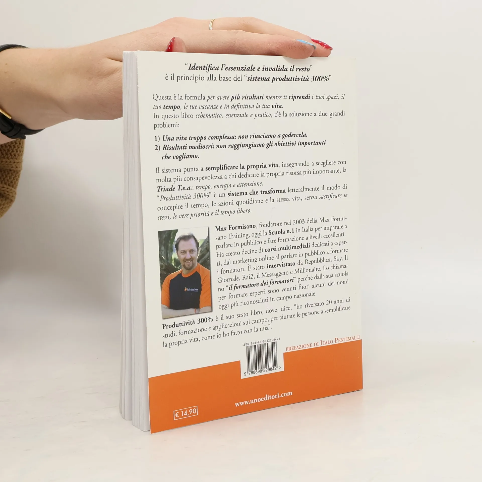 Produttività 300% è un libro schematico, essenziale e pratico. Infatti, è stato scritto seguendo lo stesso principio alla base del "sistema produttività 300%": "identifica l'essenziale e invalida il resto". Questa è la formula per avere più risultati mentre ti riprendi i tuoi spazi, il tuo tempo, le tue vacanze e in definitiva la tua vita. È la soluzione alle due grandi categorie di problemi Una vita troppo non riusciamo a godercela. Risultati non raggiungiamo gli obiettivi importanti che vogliamo. Il sistema punta a semplificare la propria vita, dato il rapporto inversamente proporzionale tra l'aumento della complessità e la diminuzione dello stile di vita. Abbiamo solo una vita e una quantità di ore e giorni limitati, dobbiamo imparare a scegliere con molta più consapevolezza a chi dedicare la nostra risorsa più importante, la triade tempo, energia e attenzione. Produttività 300% è un sistema che trasforma letteralmente il modo di concepire il tempo, la produttività, le azioni quotidiane e la stessa vita. Tutti credono che la soluzione giusta sia lavorare molto di più, sacrificando noi stessi, le nostre vere priorità e il tempo libero. A quanti è mai capitato di tornare a casa la sera, dopo molte ore di lavoro e avere la sensazione di non aver concluso nulla? Appunto. La maggioranza delle persone non ha un sistema di produttività, efficacia personale e gestione del tempo, anche se molti ne hanno studiati alcuni...