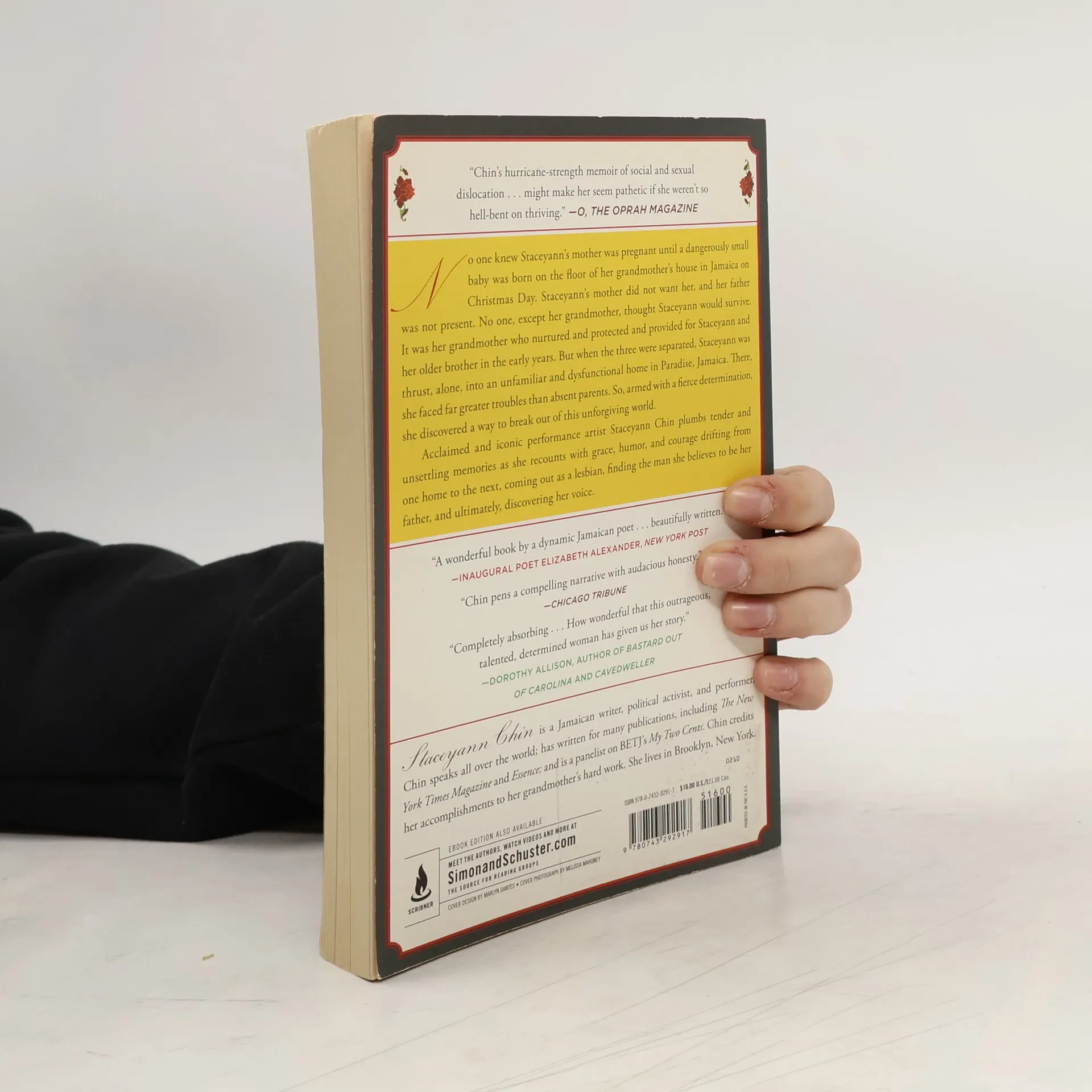 No one knew Staceyann's mother was pregnant until a dangerously small baby was born on the floor of her grandmother's house in Lottery, Jamaica, on Christmas Day. Staceyann's mother did not want her, and her father was not present. No one, except her grandmother, thought Staceyann would survive. It was her grandmother who nurtured and protected and provided for Staceyann and her older brother in the early years. But when the three were separated, Staceyann was thrust, alone, into an unfamiliar and dysfunctional home in Paradise, Jamaica. There, she faced far greater troubles than absent parents. So, armed with a fierce determination and uncommon intelligence, she discovered a way to break out of this harshly unforgiving world. Staceyann Chin, acclaimed and iconic performance artist, now brings her extraordinary talents to the page in a brave, lyrical, and fiercely candid memoir about growing up in Jamaica. She plumbs tender and unsettling memories as she writes about drifting from one home to the next, coming out as a lesbian, and finding the man she believes to be her father and ultimately her voice. Hers is an unforgettable story told with grace, humor, and courage.