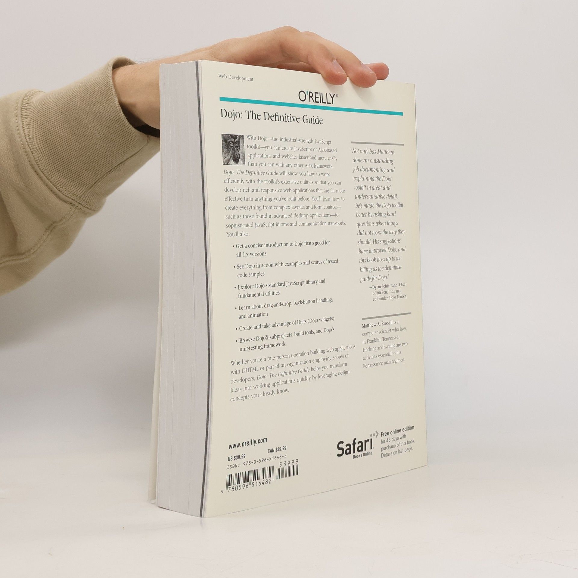 Of all the Ajax-specific frameworks that have popped up in recent years, one clearly stands out as the industrial strength solution. Dojo is not just another JavaScript toolkit -- it's the JavaScript toolkit -- and Dojo: The Definitive Guide demonstrates how to tame Dojo's extensive library of utilities so that you can build rich and responsive web applications like never before. Dojo founder Alex Russell gives a foreword that explains the "why" of Dojo and of this book. Dojo provides an end-to-end solution for development in the browser, including everything from the core JavaScript library and turnkey widgets to build tools and a testing framework. Its vibrant open source community keeps adding to Dojo's arsenal, and this book provides an ideal companion to Dojo's official documentation.Dojo: the Definitive Guide gives you the most thorough overview of this toolkit available, showing you everything from how to create complex layouts and form controls closely resembling those found in the most advanced desktop applications with stock widgets, to advanced JavaScript idioms to AJAX and advanced communication transports. With this definitive reference you get: Get a concise introduction to Dojo that's good for all 1.x versions Well-explained examples, with scores of tested code samples, that let you see Dojo in action A comprehensive reference to Dojo's standard JavaScript library (including fundamental utilities in Base, Dojo's tiny but powerful kernel) that you'll wonder how you ever lived without An extensive look at additional Core features, such as animations, drag-and-drop, back-button handling, animations like wipe and slide, and more Exhaustive coverage of out-of-the-box Dijits (Dojo widgets) as well as definitive coverage on how to create your own, either from scratch or building on existing ones An itemized inventory of DojoX subprojects, the build tools, and the DOH, Dojo's unit-testing framework that you can use with Dojo -- or anywhere else If you're a DHTML-toting web developer, you need to read this book -- whether you're a one-person operation or part of an organization employing scores of developers. Dojo packs the standard JavaScript library you've always wanted, and Dojo: The Definitive Guide helps you transform your ideas into working applications quickly by leveraging design concepts you already know.
