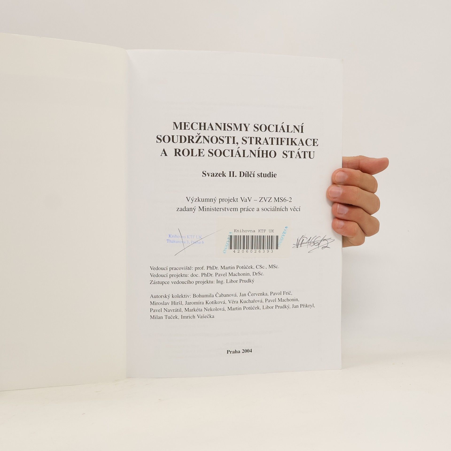 Mechanismy sociální soudržnosti, stratifikace a role sociálního státu, Pavel Machonin, Bohumila Čabanová, Univerzita Karlova. Centrum pro sociální a ekonomické strategie, Česko. Ministerstvo práce a sociálních věcí