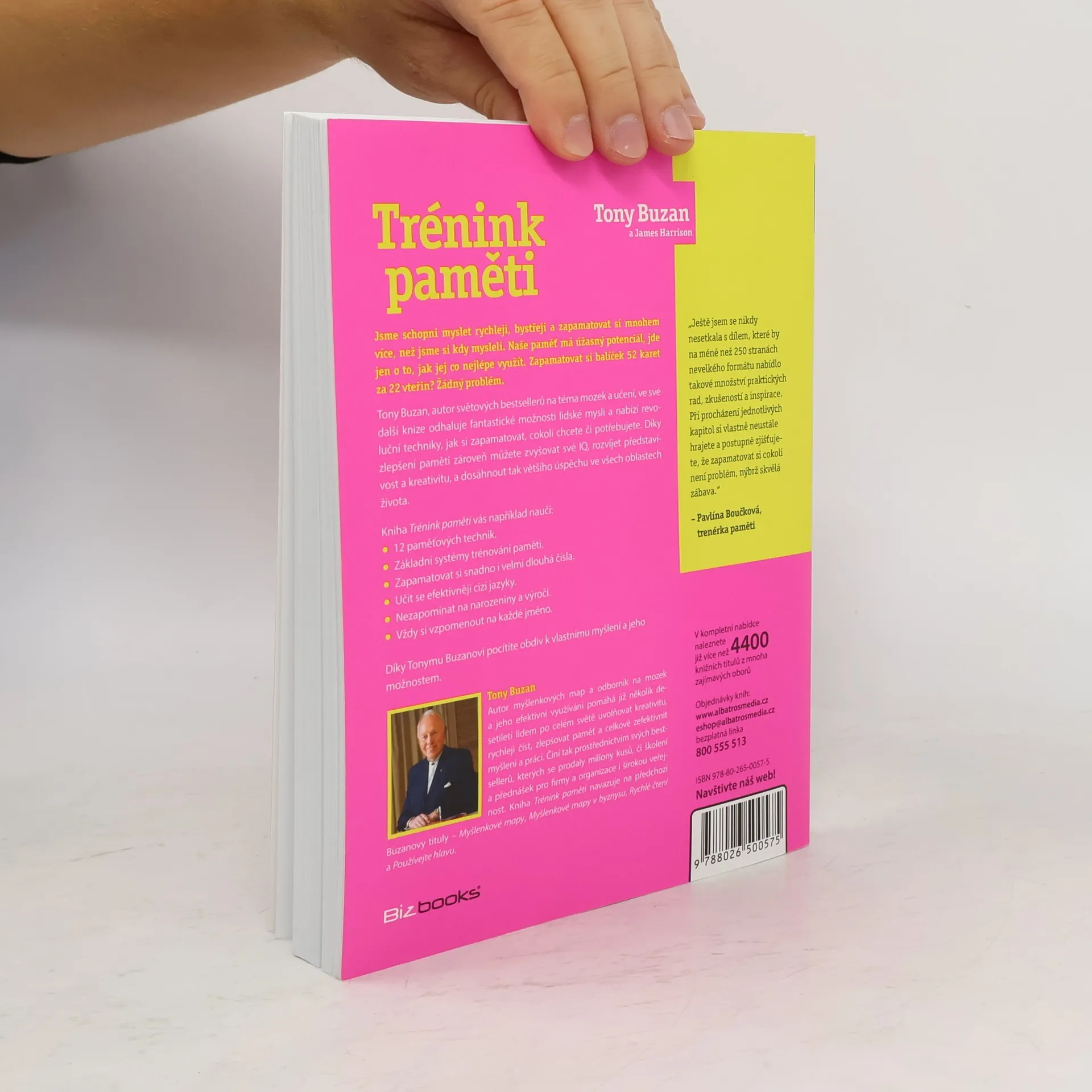 Jsme schopni zapamatovat si mnohem více, než jsme si kdy mysleli. Naše paměť má úžasný potenciál, který lze efektivně využít. Tony Buzan, autor bestsellerů o mozku a učení, odhaluje techniky, jak si zapamatovat cokoli. Například, zapamatovat si balíček 52 karet za 22 vteřin? Snadno. Zlepšení paměti může zároveň zvýšit IQ, rozvinout představivost a kreativitu, což vede k většímu úspěchu v životě. Kniha vás naučí 12 paměťových technik, základní systémy trénování paměti, jak snadno zapamatovat dlouhá čísla, efektivně se učit cizí jazyky a nezapomínat na důležitá data jako narozeniny a výročí. „Ještě jsem se nikdy nesetkala s dílem, které by na méně než 250 stranách nabídlo tolik praktických rad a inspirace. Při procházení kapitol si vlastně hrajete a zjišťujete, že zapamatovat si cokoli je skvělá zábava.“ – Pavlína Boučková, trenérka paměti. Tony Buzan, odborník na efektivní využívání mozku, pomáhá lidem po celém světě uvolňovat kreativitu, rychleji číst a zlepšovat paměť. Jeho bestsellery a školení pro firmy i širokou veřejnost se prodaly v milionech kusů. Tato kniha navazuje na jeho předchozí tituly, jako jsou Myšlenkové mapy a Rychlé čtení.