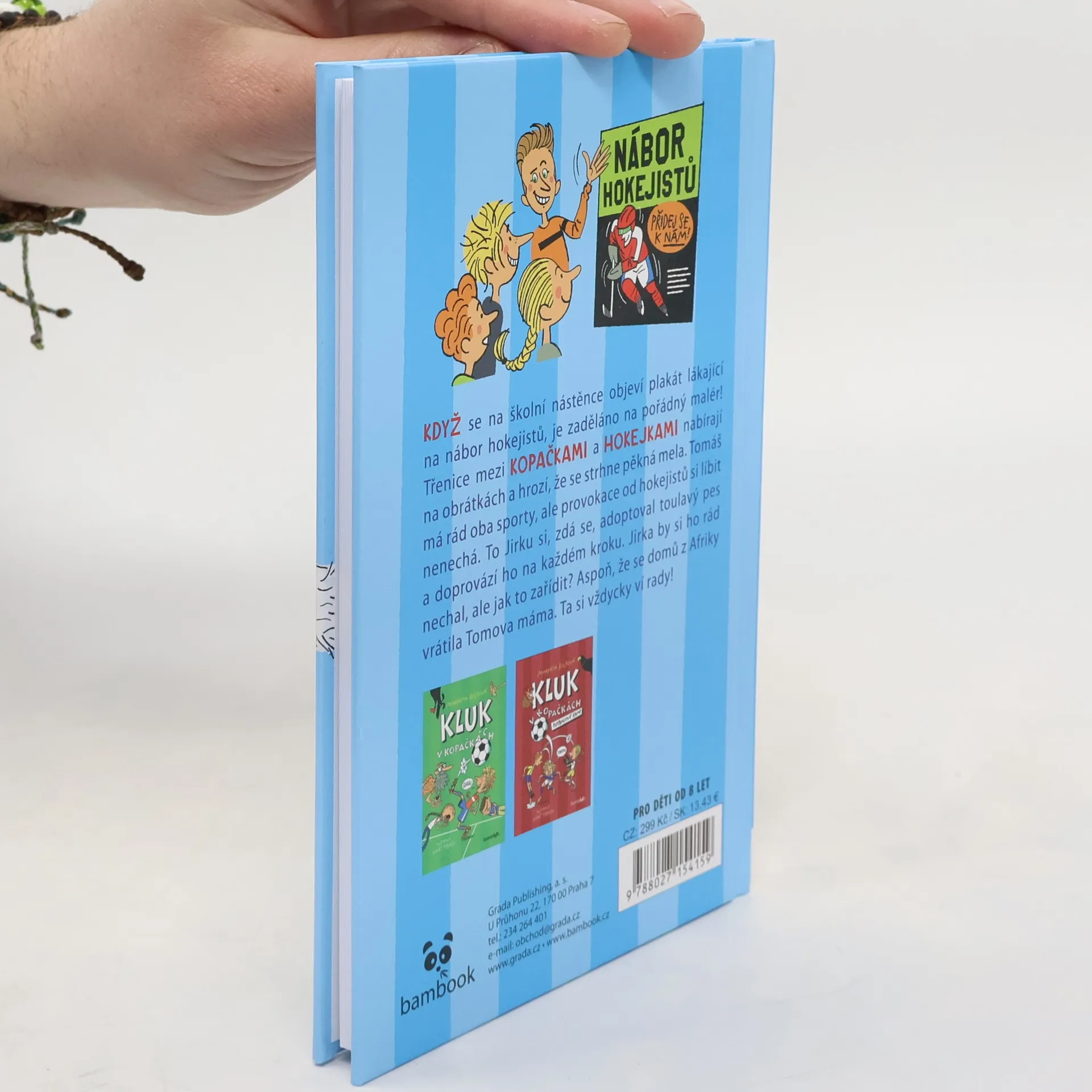 Když se na školní nástěnce objeví plakát lákající na nábor hokejistů, je zaděláno na pořádný malér! Třenice mezi Kopačkami a Hokejkami nabírají na obrátkách a hrozí, že se strhne pěkná mela. Tomáš má rád oba sporty, ale provokace od hokejistů si líbit nenechá. To Jirku si, zdá se, adoptoval toulavý pes a doprovází ho na každém kroku. Jirka by si ho rád nechal, ale jak to zařídit? Aspoň, že se domů z Afriky vrátila Tomova máma. Ta si vždycky ví rady!