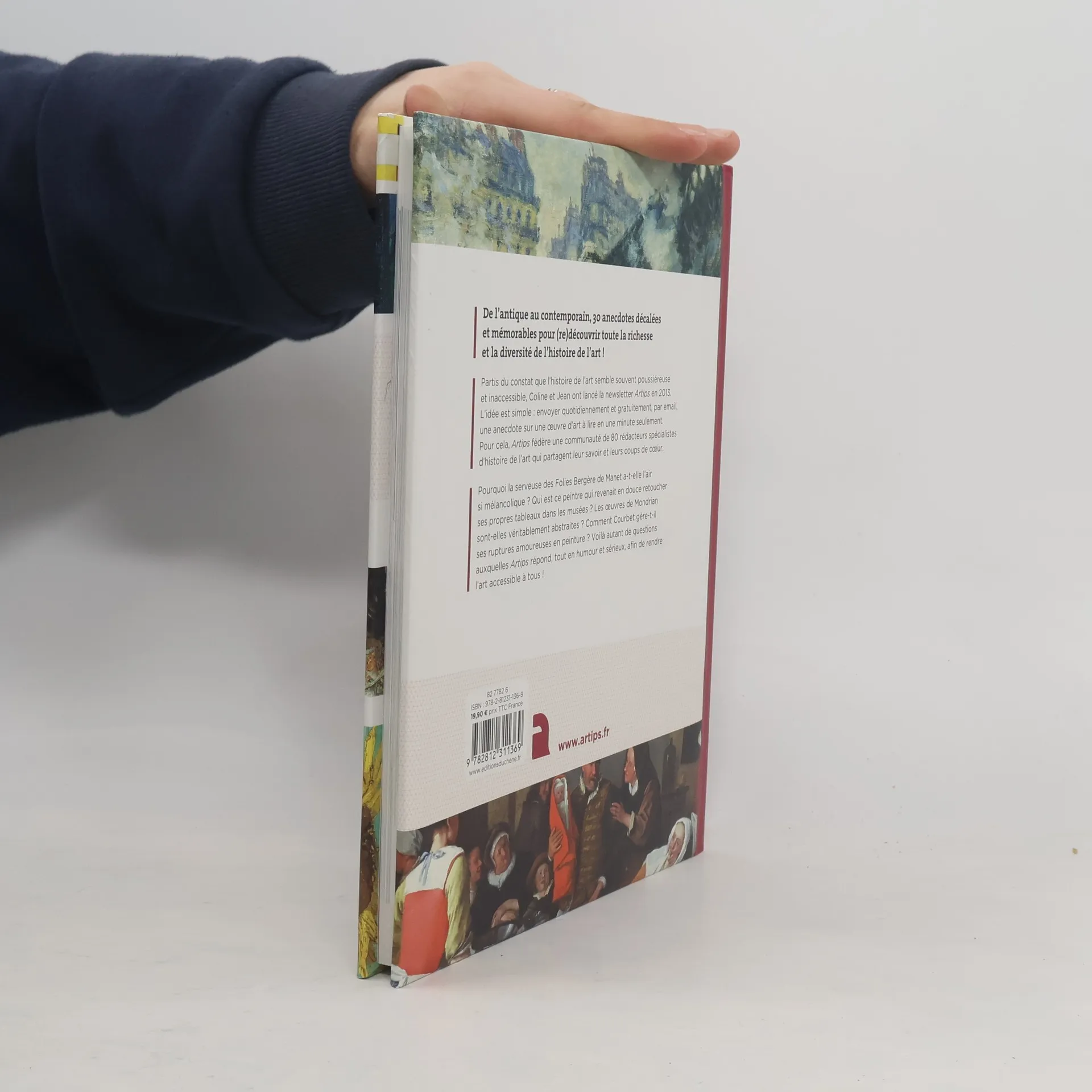 "De l'antique au contemporain, 30 anecdotes décalées et mémorables pour (re)découvrir toute la richesse et la diversité de l'histoire de l'art ! Partis du constat que l'histoire de l'art semble souvent poussiéreuse et inaccessible, Coline et Jean ont lancé la newsletter 'Artips' en 2013. L'idée est simple : envoyer quotidiennement et gratuitement, par email, une anecdote sur une œuvre d'art à lire en une minute seulement. Pour cela, 'Artips' fédère une communauté de 80 rédacteurs spécialistes d'histoire de l'art qui partagent leur savoir et leurs coups de cœur. Pourquoi la serveuse des 'Folies Bergère' de Manet a-t-elle l'air si mélancolique ? Qui est ce peintre qui revenait en douce retoucher ses propres tableaux dans les musées ? Les œuvres de Mondrian sont-elles véritablement abstraites ? Comment Courbet gère-t-il ses ruptures amoureuses en peinture ? Voilà autant de questions auxquelles 'Artips' répond, tout en humour et sérieux, afin de rendre l'art accessible à tous !" [Source : 4e de couv.]