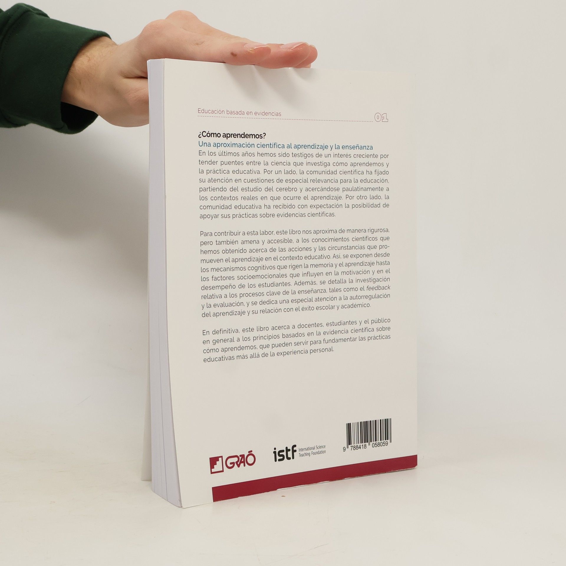 En los últimos años hemos sido testigos de un interés creciente por tender puentes entre la ciencia que investiga cómo aprendemos y la práctica educativa. Por un lado, la comunidad científica ha fijado su atención en cuestiones de gran relevancia para la educación, partiendo del estudio del cerebro y acercándose paulatinamente a los contextos reales en que ocurre el aprendizaje. Por otro lado, la comunidad educativa ha recibido con expectación la posibilidad de apoyar sus prácticas sobre evidencias científicas. Para contribuir a esta labor, este libro nos aproxima de manera rigurosa, pero también amena y accesible, a los conocimientos científicos que hemos obtenido acerca de las acciones y las circunstancias que promueven el aprendizaje en el contexto educativo. Así, se exponen desde los mecanismos cognitivos que rigen la memoria y el aprendizaje hasta los factores socioemocionales que influyen en la motivación y en el desempeño de los estudiantes. Además, se detalla la investigación relativa a los procesos clave de la enseñanza, tales como el feedback y la evaluación, y se dedica una especial atención a la autorregulación del aprendizaje y su relación con el éxito escolar y académico. En definitiva, este libro acerca a docentes, estudiantes y el público en general a los principios basados en la evidencia científica sobre cómo aprendemos, que pueden servir para fundamentar las prácticas educativas más allá de la experiencia personal.