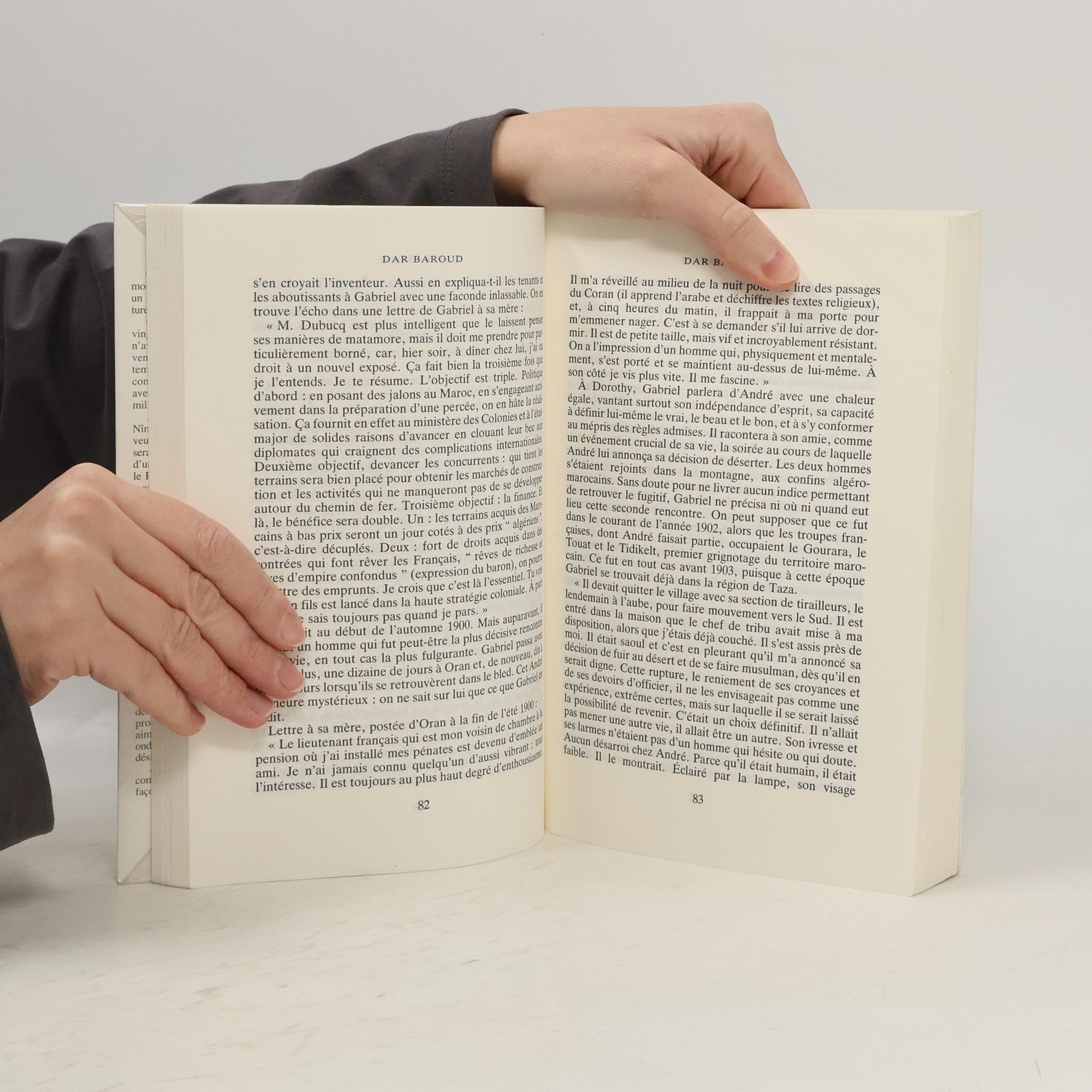 Gabriel Loré, le héros de ce livre est mon père. Je vais raconter sa vie comme un roman car c’en est un, plein d’aventures. Comment raconter Gabriel ? Pendant vingt-quatre ans, j’ai vécu comme si je n’avais pas de père. Je me demande souvent comment j’ai pu accepter si longtemps de ne rien savoir sur lui, me contenter de l’image caricaturale d’un aventurier colonial vivant en Afrique, à milles lieues de ce qui m’était cher. A la fin du siècle dernier, il quitte Nîmes et débarque au Maroc. L’époque veut des bâtisseurs d4empires. Mon père sera toujours un nomade et le contraire d’un conquérant : quand Lyautey impose le Protectorat, Gabriel se retire dans la maison de Dar Baroud sur une terre qu’il n’a jamais voulu posséder. Combien de témoins ai-je dû retrouver pour le connaître et le reconnaître, reconstituer cet itinéraire à embardées incessantes : son frère le caïd Mahieddine, Riby Azuelos, négociant et banquier tangérois, et les trois femmes qui l’ont aimé puis l’ont perdu ? Dorothy préférait lutter contre l’esclavage, Sarah-Louise devait grandir un peu, et ma mère l’élever vaille que vaille en Espagne et me permettre d’accomplir à Paris ma vocation : je suis danseur. Ainsi, en avançant sur la route de Gabriel, je n’ai cessé de découvrir qu’elle était aussi loin que possible de la mienne. Alors au-delà de notre ressemblance physique ? nous sommes blonds tous les deux ?, qu’est-ce qui nous rend donc si proches ? Je sais maintenant que nous aimons les mêmes peaux et les mêmes ondes, que nous sommes pris des mêmes désirs et des mêmes tourments. Je sais qu’il aurait aimé Sarah-Louise comme je l’ai aimée, aussi fort. A notre façon à nous.