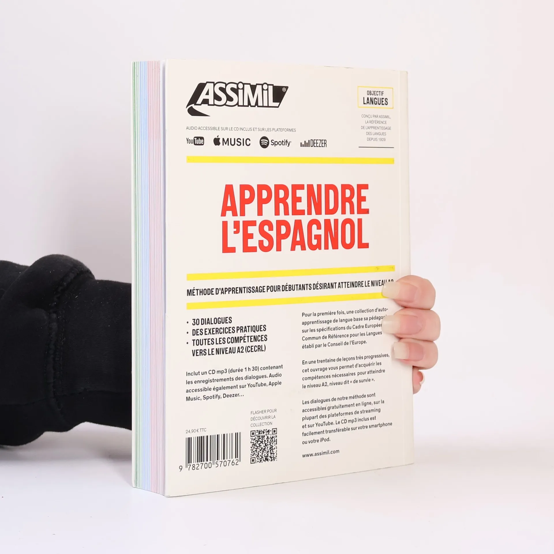 Apprendre l'espagnol . Méthode d'apprentissage pour débutants désirant atteindre le niveau A2 . Pour la première fois, une collection d'autoapprentissage de langue base sa pédagogie sur les spécifications du Cadre Européen Commun de Référence pour les Langues établi par le Conseil de l'Europe.. En une trentaine de leçons très progressives, cet ouvrage vous permet d'acquérir les compétences nécessaires pour atteindre le niveau A2, niveau dit « de survie ».. Les dialogues de notre méthode sont accessibles gratuitement en ligne, sur la plupart des plateformes de streaming et sur YouTube. Le CD mp3 inclus est facilement transférable sur votre smartphone ou votre iPod.. Inclut un CD mp3 (durée 1 h 30) contenant les enregistrements des dialogues. Audio accessible également sur YouTube, Apple Music, Spotify, Deezer....