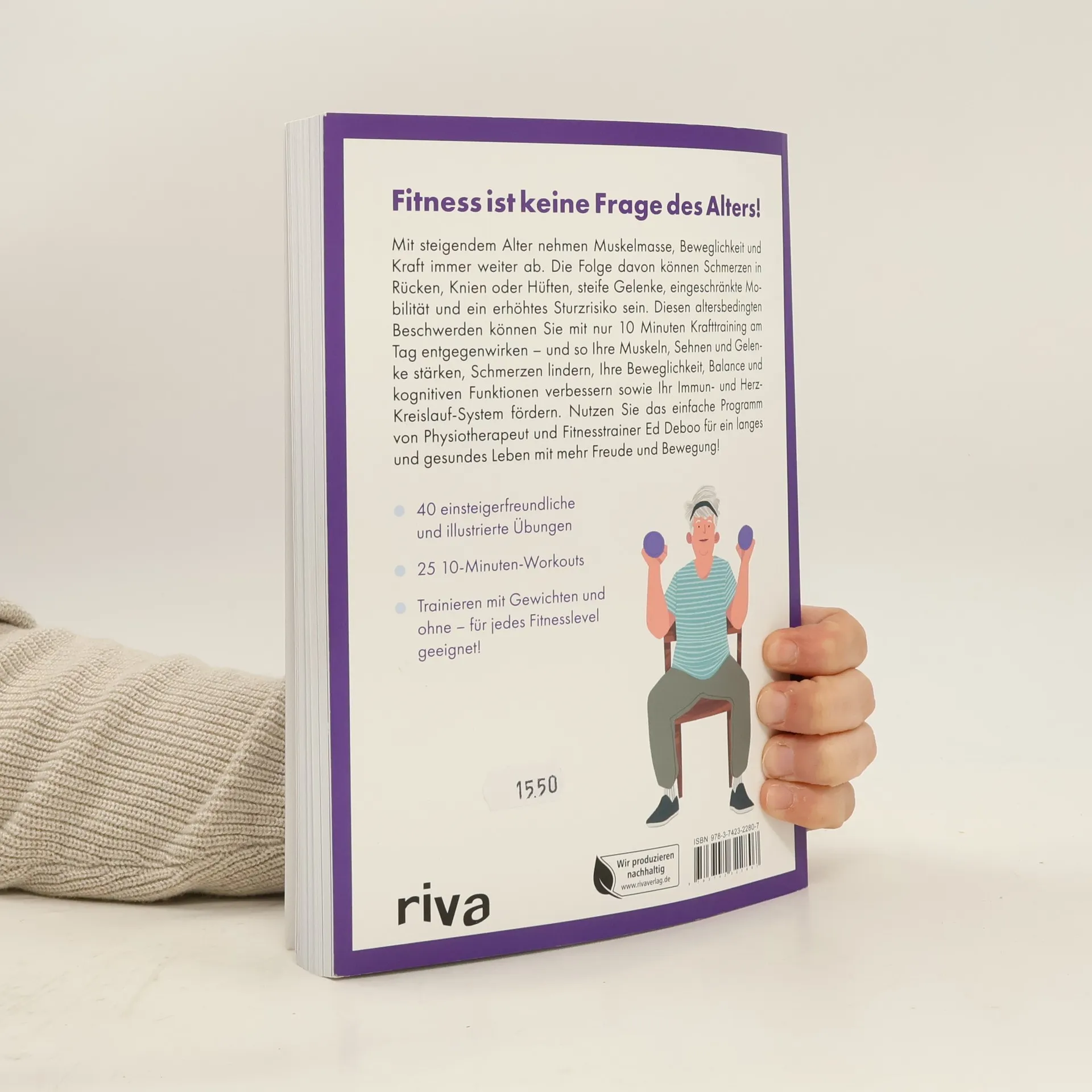 Die Bevölkerung wird immer älter und somit suchen immer mehr Menschen nach Wegen, Alterserscheinungen wie abnehmender Mobilität und Muskelkraft entgegenzuwirken. Denn eine gute körperliche Fitness und starke Muskulatur bilden die Grundlage für ein langes und gesundes Leben: Durch regelmäßige Bewegung werden nicht nur die Muskeln, Knochen und Gelenke gestärkt, sondern auch Schmerzen gelindert, Immun- und Herz-Kreislauf-System angeregt sowie Balance und kognitive Funktionen gefördert. Physiotherapeut und Fitnesstrainer Ed Deboo zeigt, wie selbst im hohen Alter effektiv trainiert und Kraft aufgebaut werden kann – und das in nur zehn Minuten am Tag. Die 40 modern illustrierten Übungen sind einsteigerfreundlich gestaltet, mit und ohne Gewichten durchführbar und individuell an das Fitnesslevel anpassbar. In den 10-Minuten-Workouts werden alle Muskelgruppen in den Fokus genommen, was ein ausgewogenes und effektives Training garantiert, um stark, fit und gesund zu bleiben. Somit ist Fitness keine Frage des Alters mehr!